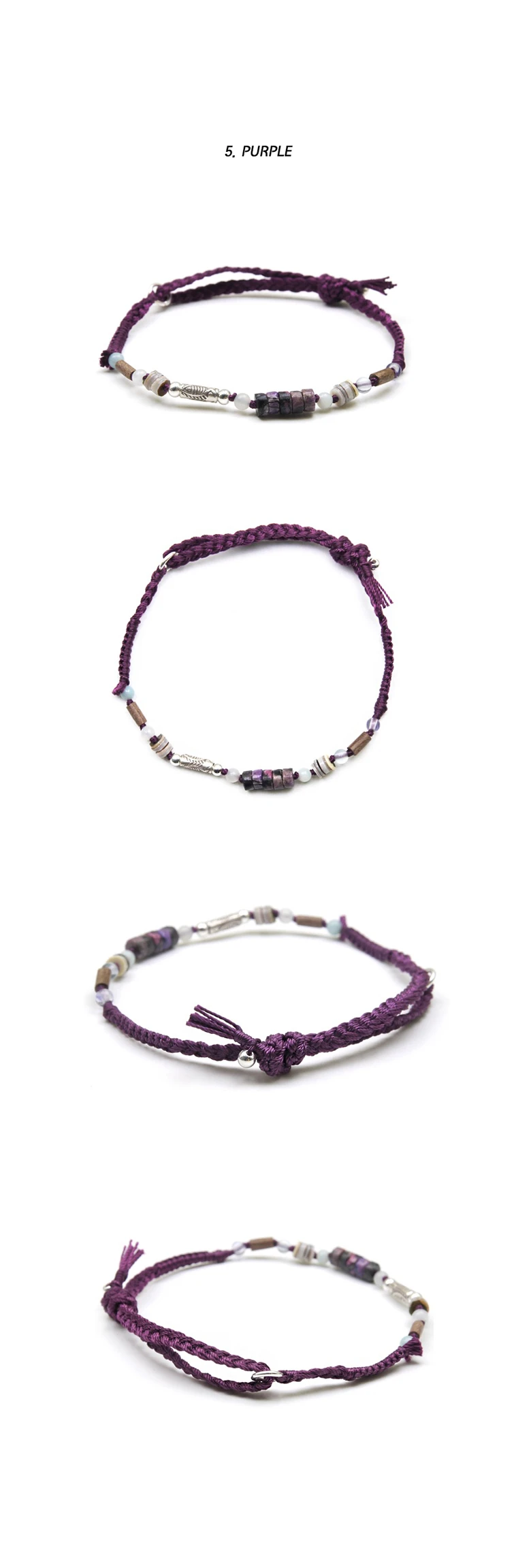 サイズ:全長約28cm 素材:レーヨン、ポリエステル、シルバー、ハウライト、キングストーン 「왈(曰)」は「語る」「告げる」という意味を持つ言葉で、色や天然石それぞれに意味があります。 シルバーリングで片方の輪をつなぐデザインにより、結び目のサイズを自由に調整できる仕様です。 キングストーン:成功・財運・事業繁栄をもたらすとされ、人気の天然石。 ハウライト:心を落ち着かせる効果が高く、ストレス緩和や不眠症改善、怒りの吸収などで心を静めると言われています。 カラーの意味: 紫:高貴 ベージュ:誠実・忍耐 赤:金運 茶:幸福 グレー:バランス・安定 黒:力・権力