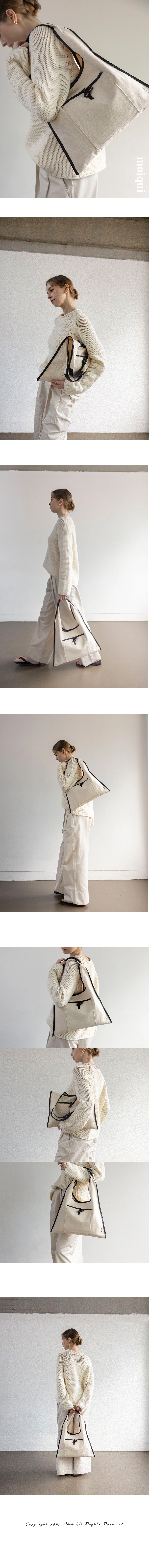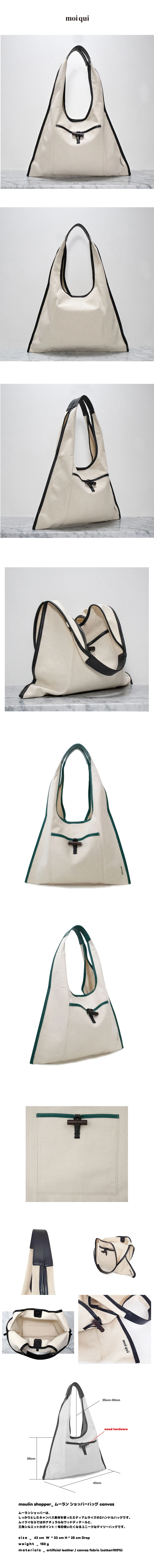 しっかりとしたキャンバス素材を使ったミディアムサイズの2ハンドルバッグ。 ムイクイならではのナチュラルなウッドディテールと、 三角シルエットがポイント!毎日使いたくなるユニークなデイリーバッグです。