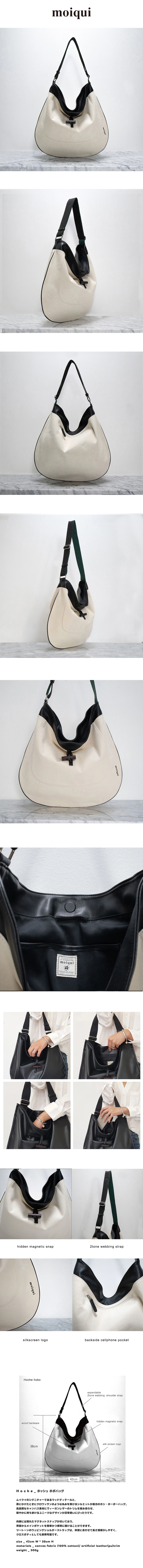 ムイクイのシグニチャーであるウッドディテールと、 肩にかけたときにクロワッサンのような丸みを帯びるシルエットが魅力です。 高品質なキャンバス素材にヴィーガンレザーのトリムを組み合わせ、 軽やかに持ち歩けるユニークなデザインが日常使いにぴったりです。 内側には隠れたマグネットスナップが付いており、 背面からメインポケットを簡単かつ便利に開けることができます。 ツートーンのウェビングショルダーストラップは、体型に合わせて長さ調節がしやすくクロスボディとしても使用可能です。