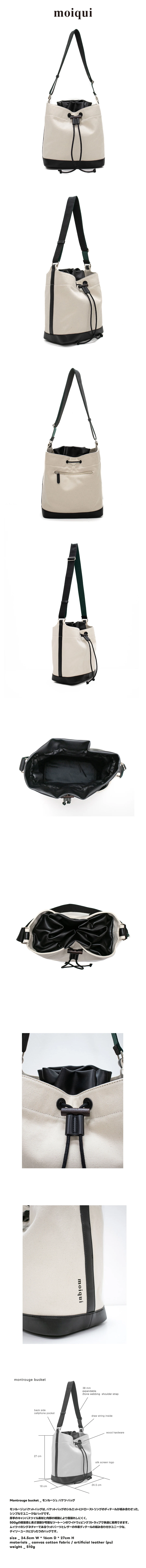 バケットバッグのシルエットにドローストリングのディテールが組み合わさったシンプルでユニークなバッグ。厚手のキャンバスツイル素材と内部の補強により型崩れしにくく、 500gの軽量感と長さ調節が可能なツートーンのワイドウェビングストラップで快適に着用できます。 ムイクイのシグネチャーであるウッドパーツとレザーの巾着ディテールの組み合わせがユニークな、 デイリーユースにぴったりのバッグです。