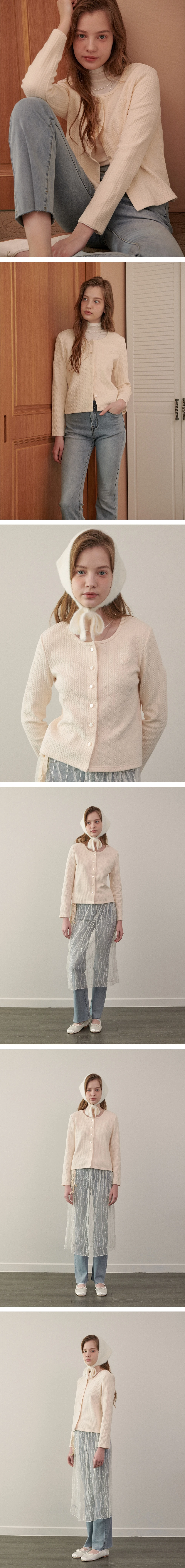 ツイスト柄と胸元のハート刺繍がポイントになった、柔らかなカラーリングのカーディガンです。 ※製品の変形や色移りを防ぐため、単独でのドライクリーニングをお願いいたします。