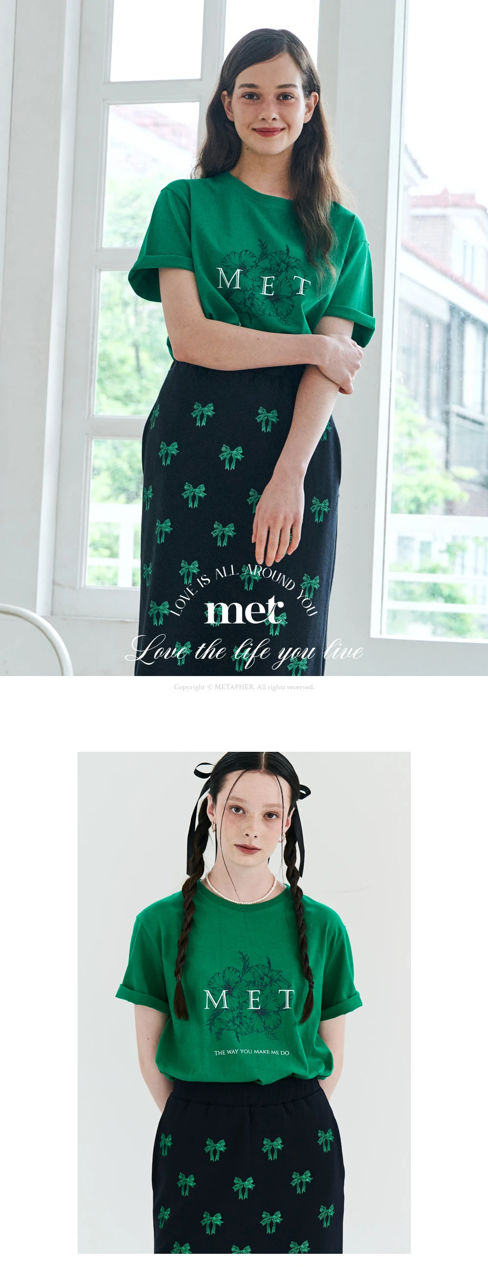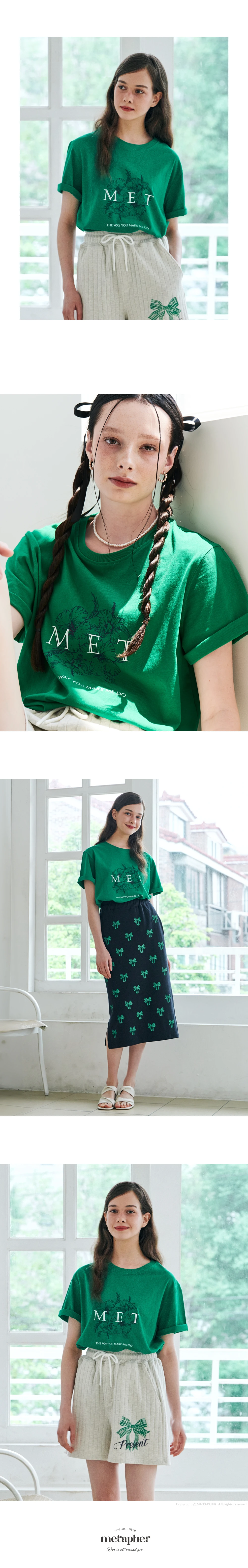 MET two-tone lettering flower T-shirt Green