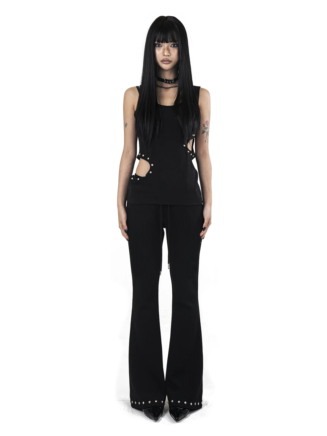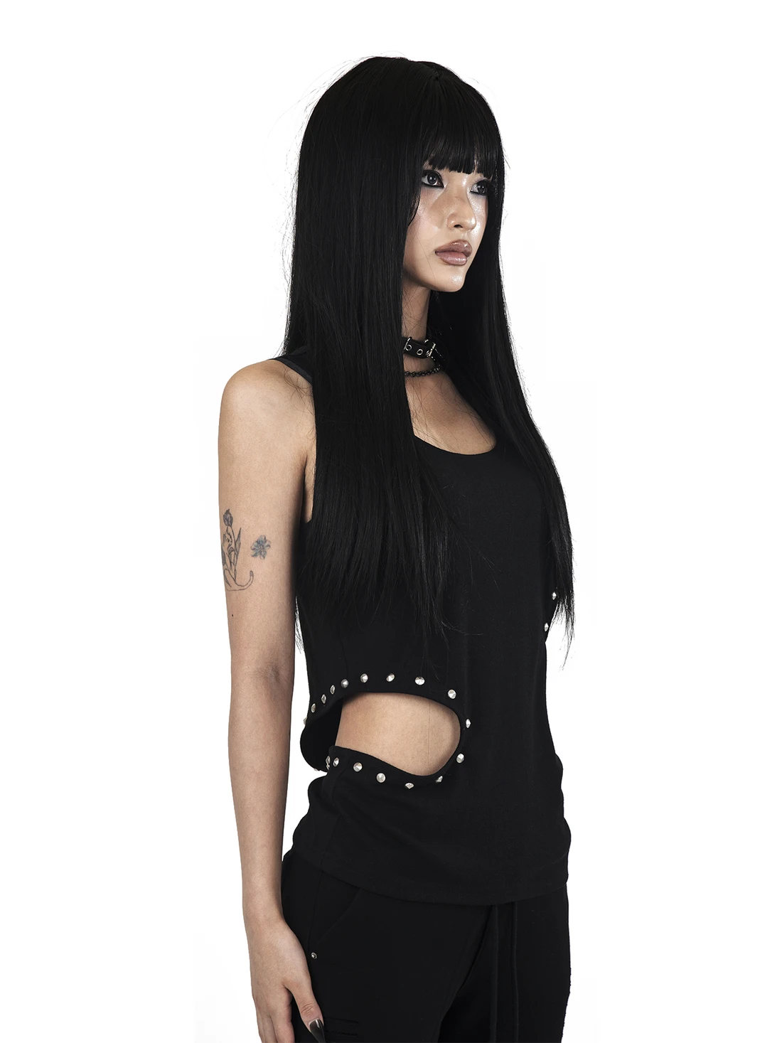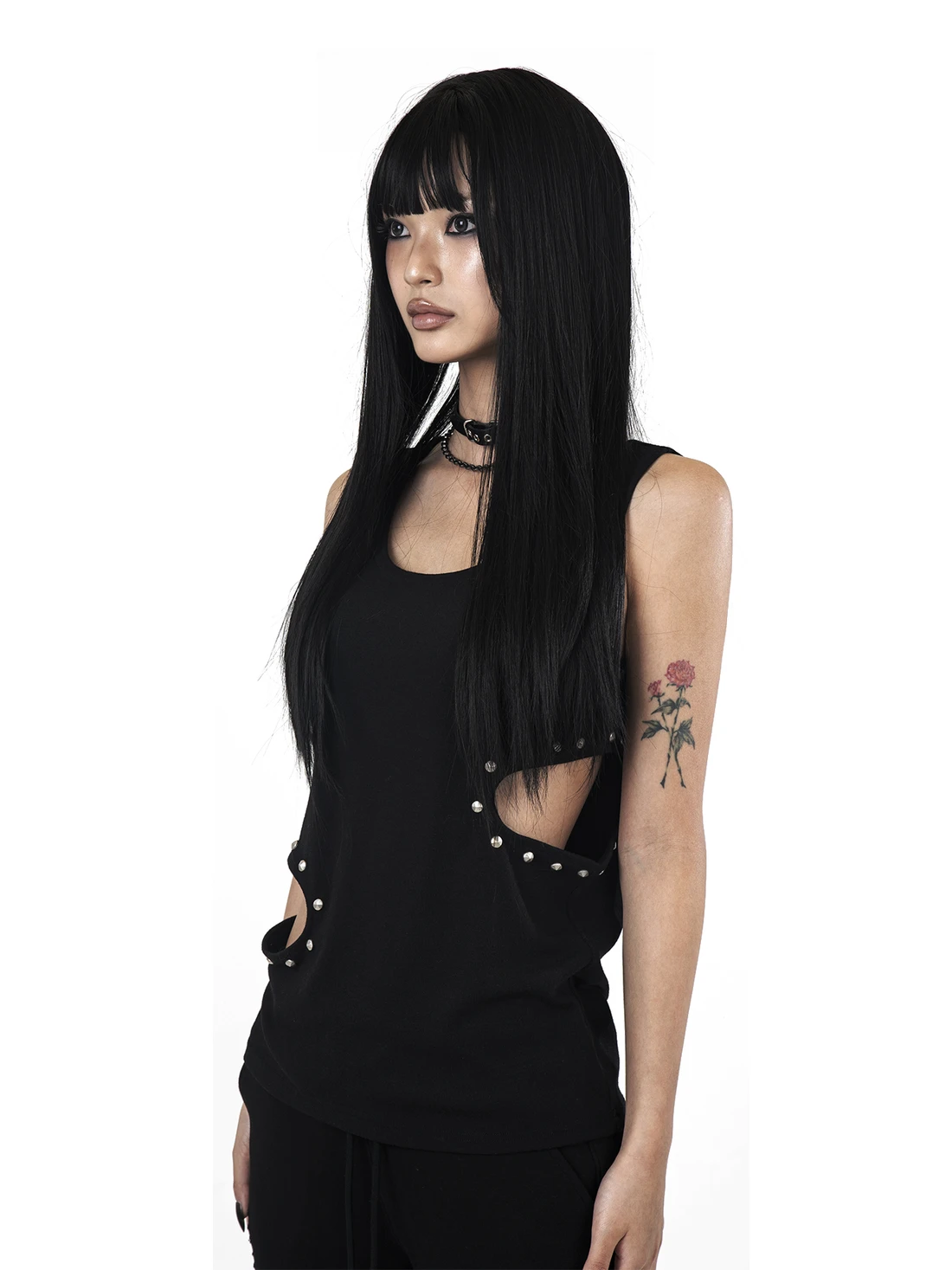 [2ND REORDER] CUT-OUT STUD SLEEVELESS TOP BLACK