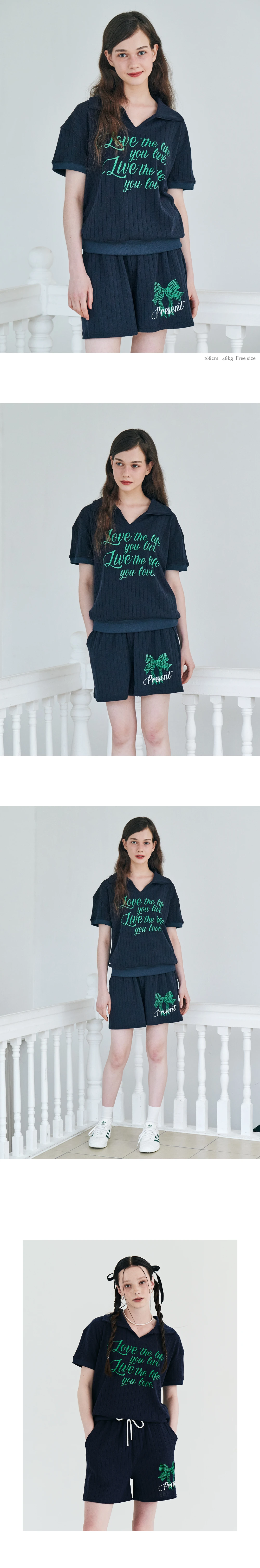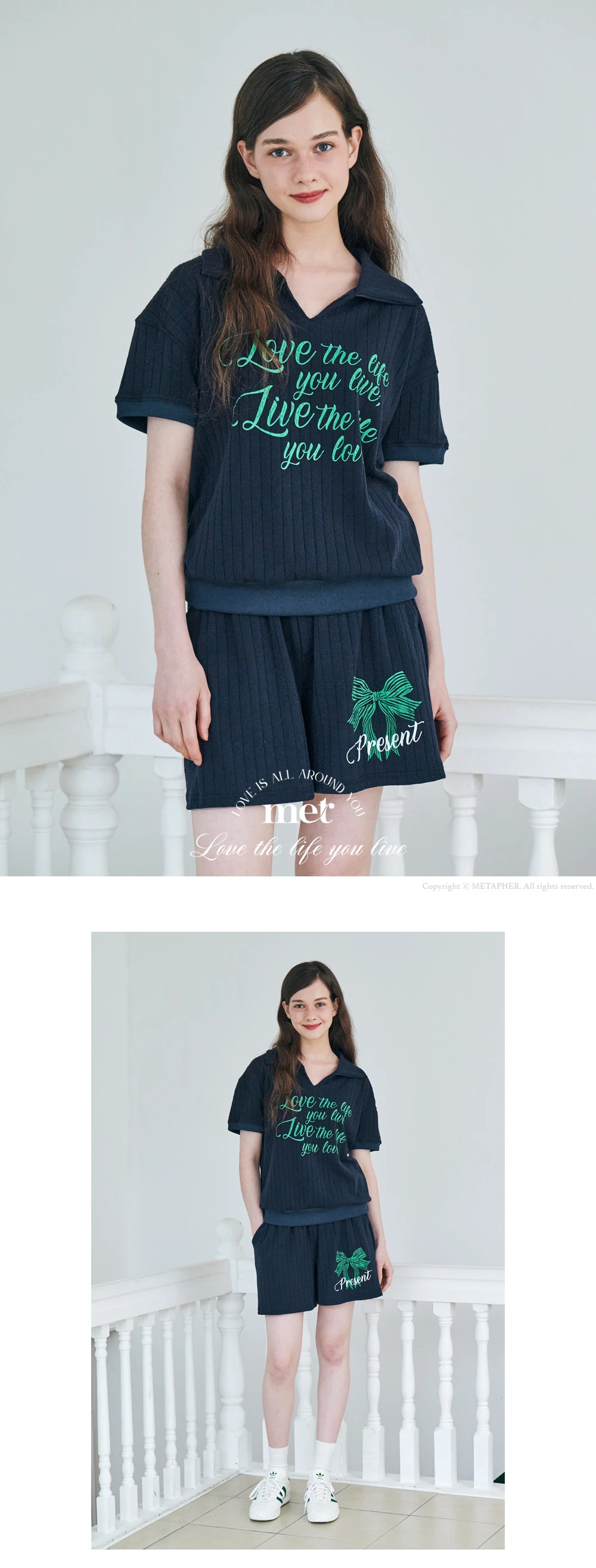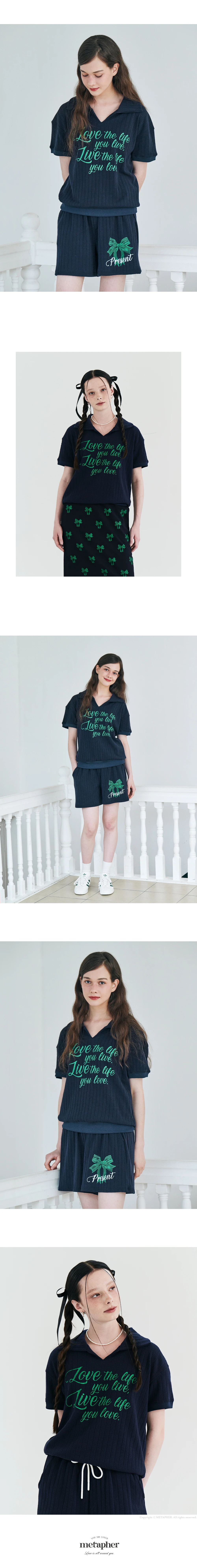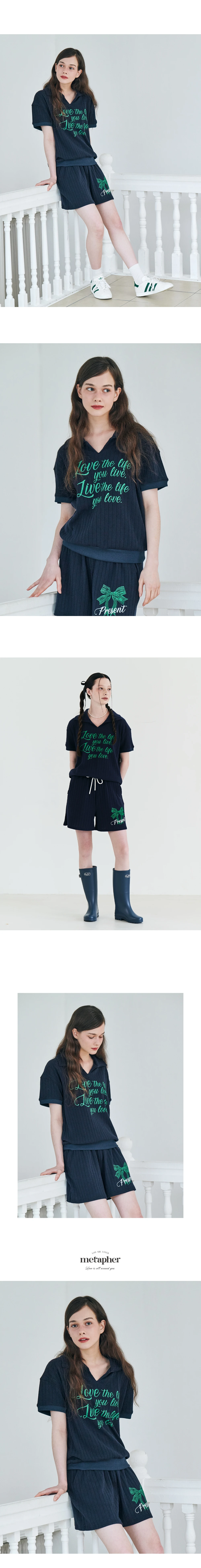MET summer knit collar T-shirt Navy