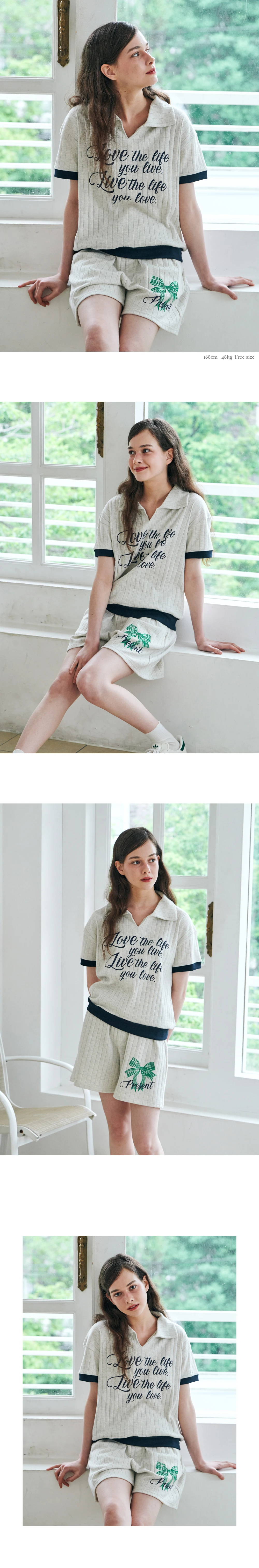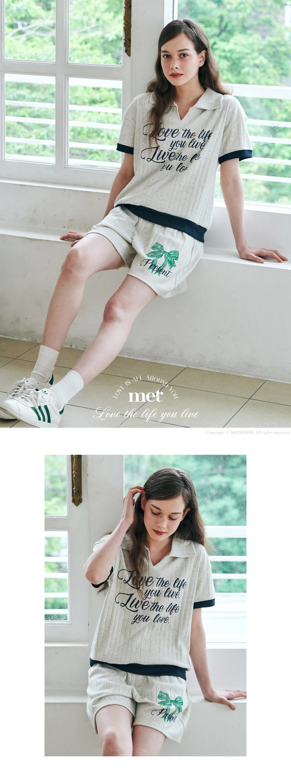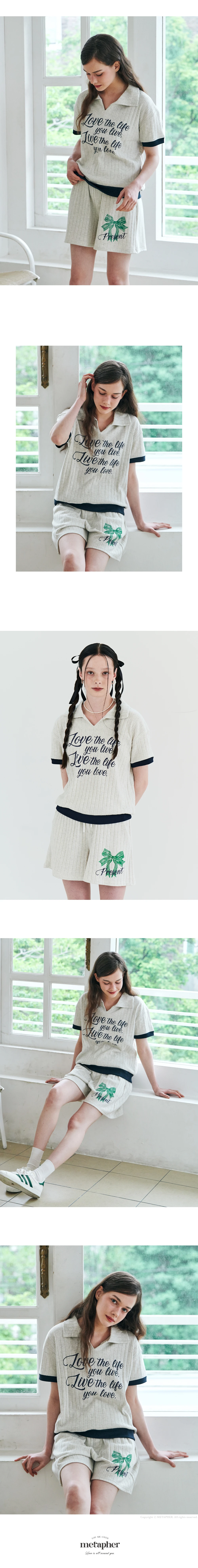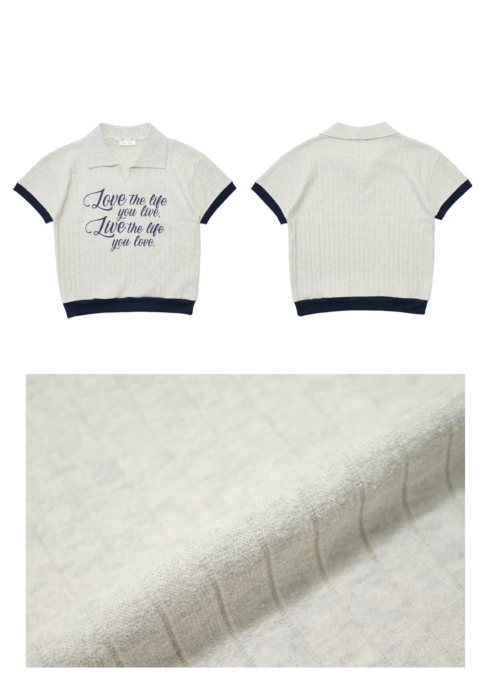 MET summer knit collar T-shirt Oatmeal