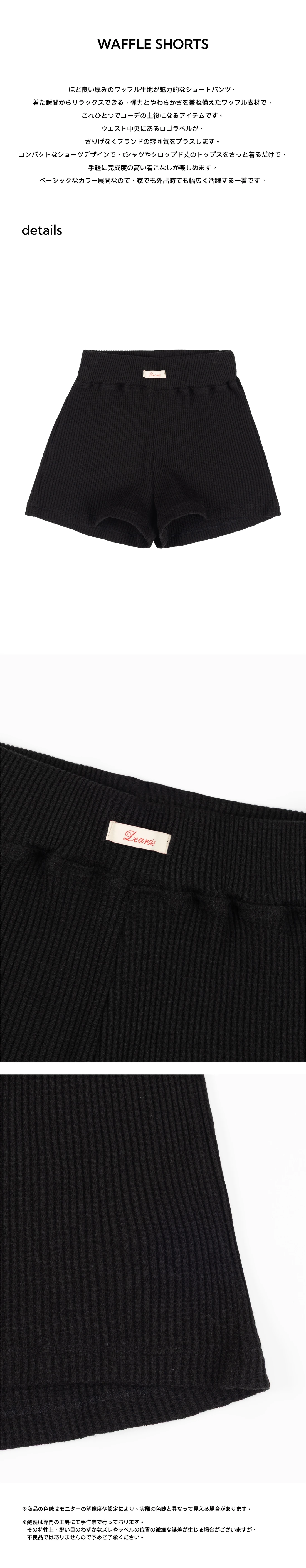ほど良い厚みのワッフル生地が魅力的なショートパンツ。着た瞬間からリラックスできる、弾力とやわらかさを兼ね備えたワッフル素材で、これひとつでコーデの主役になるアイテムです。ウエスト中央にあるロゴラベルが、さりげなくブランドの雰囲気をプラスします。コンパクトなショーツデザインで、Tシャツやクロップド丈のトップスをさっと着るだけで、手軽に完成度の高い着こなしが楽しめます。ベーシックなカラー展開なので、家でも外出時でも幅広く活躍する一着です。
