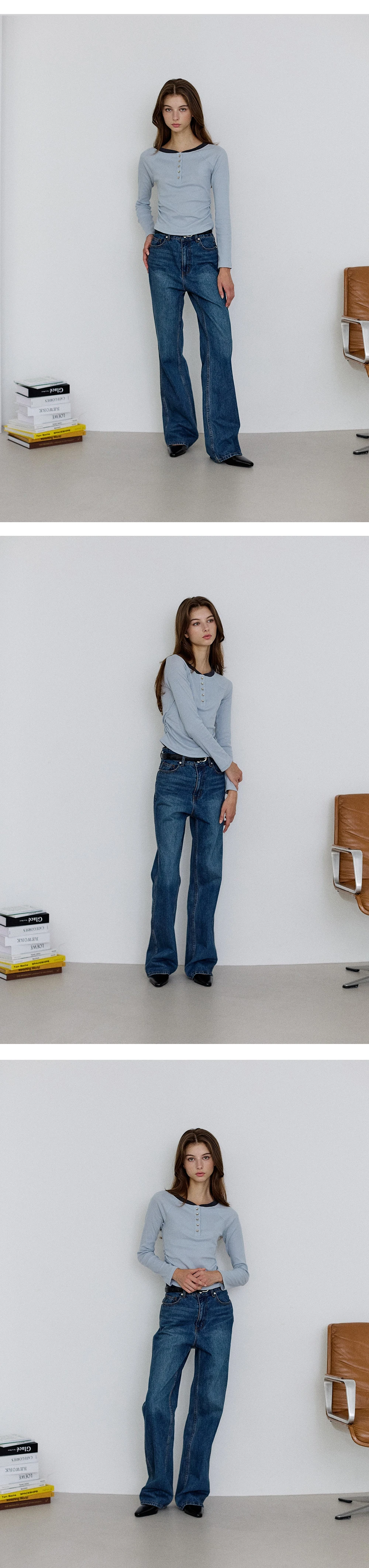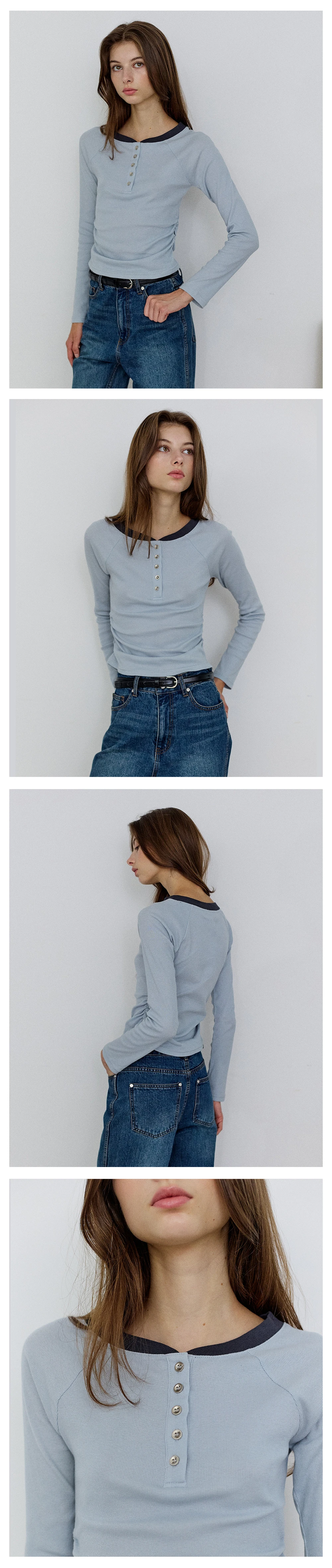 ヘンリーネックシャーリングロングスリーブ - Baby blue