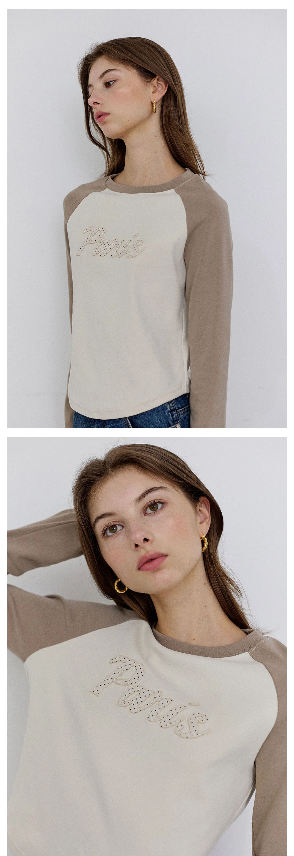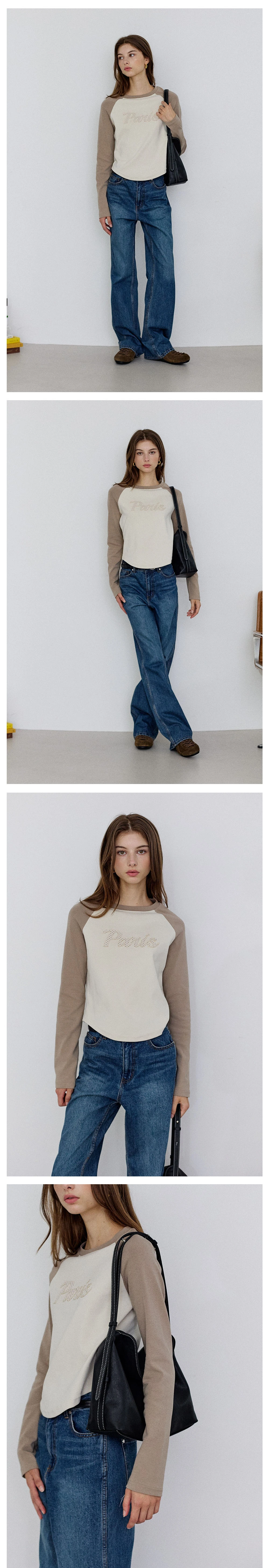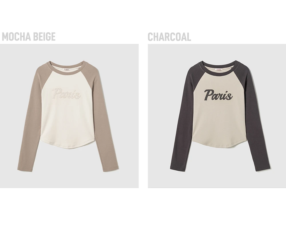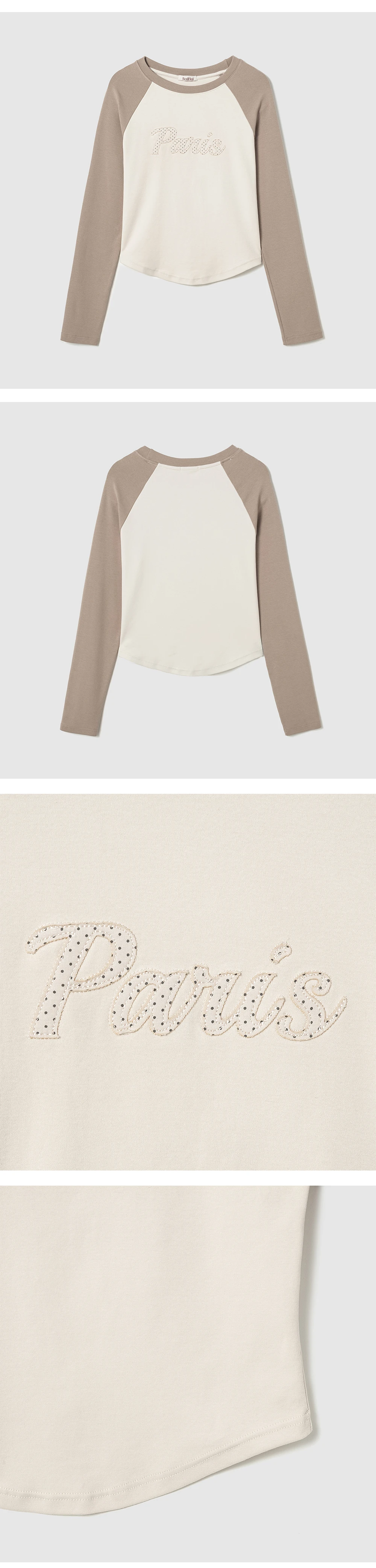 パリレタリングラグランロングスリーブTシャツ - Mocha beige