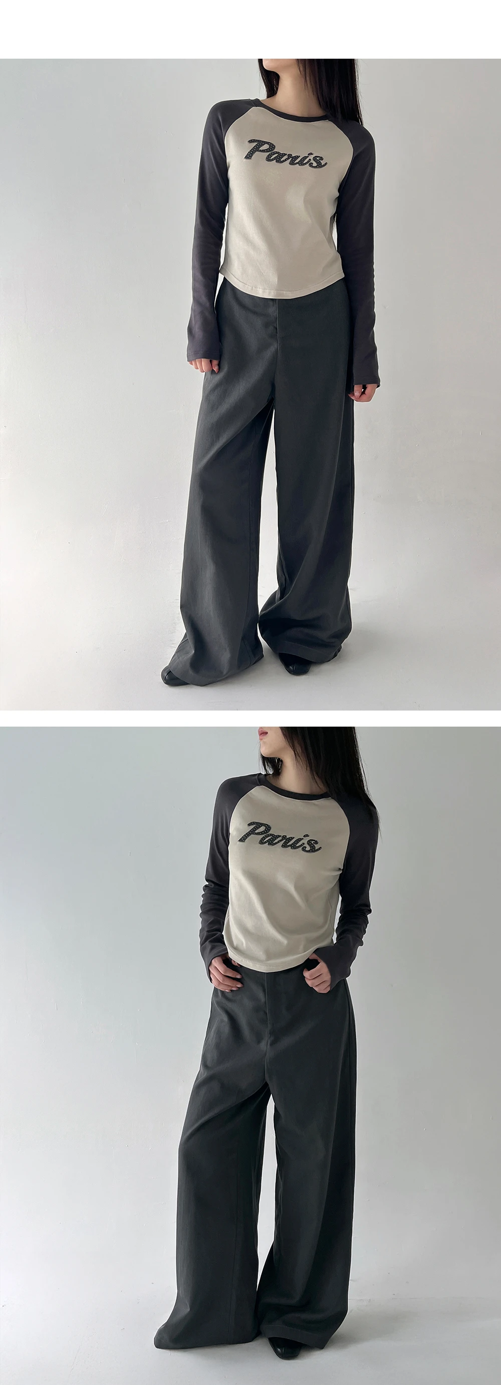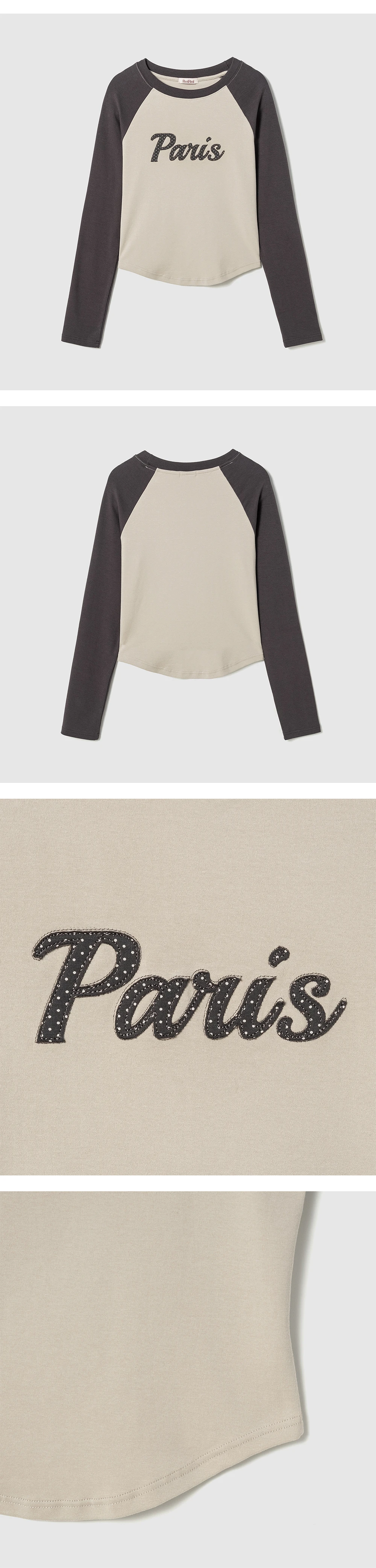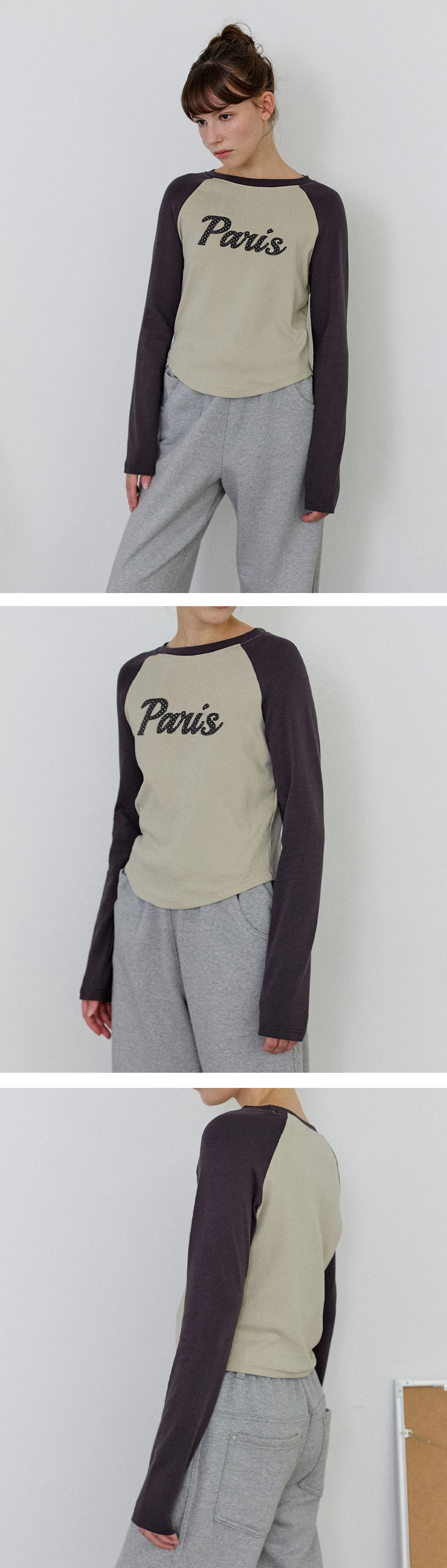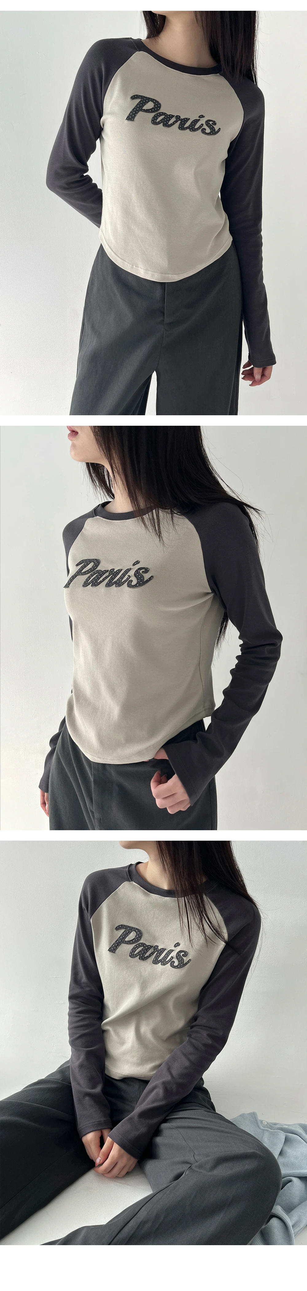 パリレタリングラグランロングスリーブTシャツ - Charcoal