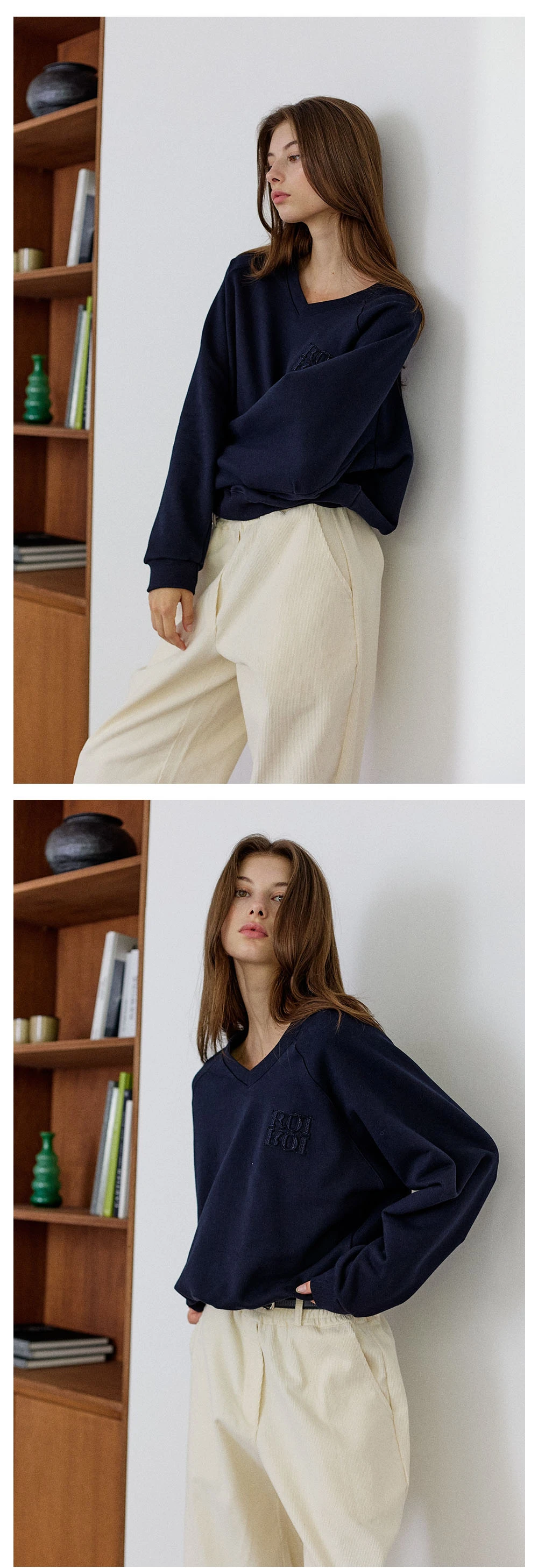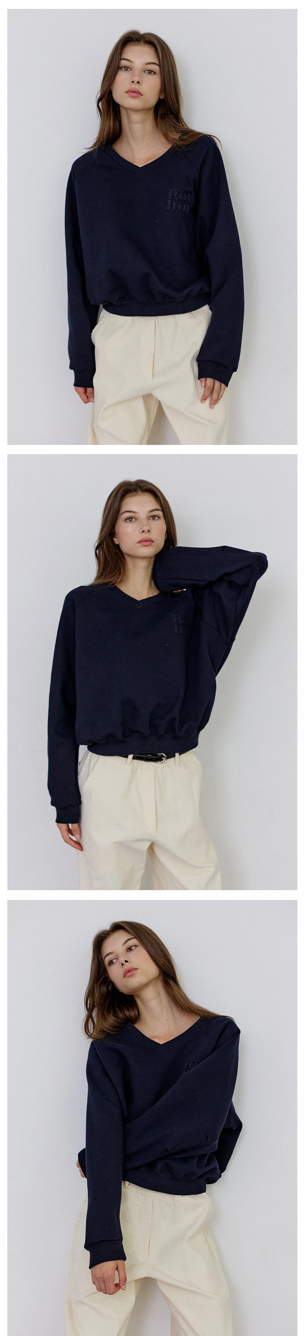 Vネックロゴスウェットシャツ- Navy