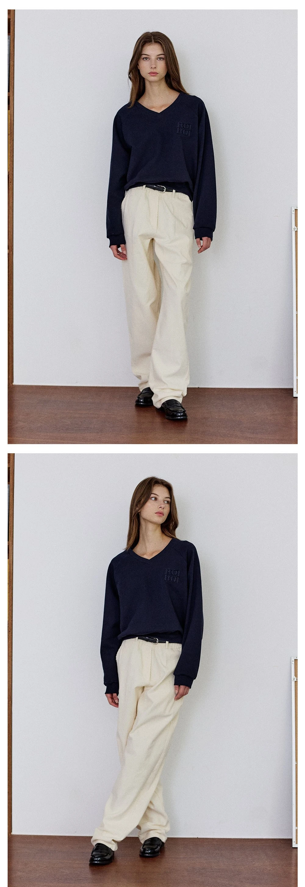 ROIROIロゴパッチ刺繍がポイントのスウェットシャツ。ゆったりとしたルーズフィットシルエットで、生地の縮みや変形を最小限に抑えるため、テンタダンブル加工を施しています。