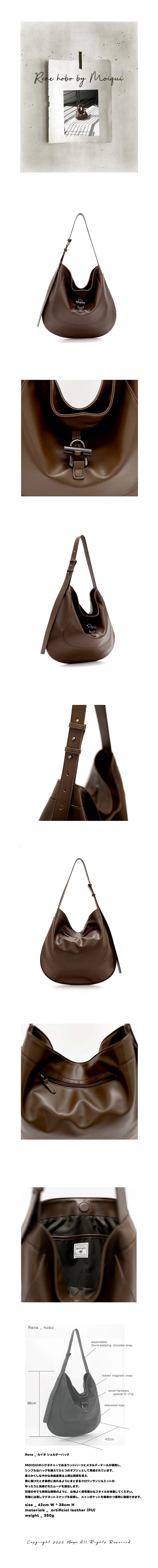 柔らかく柔軟な合成皮革は高級な質感を伝え、ショルダーにかけた時に自然に流れるようにまとまるクロワッサンシルエットがゆったりと洗練されたムードを演出します。内部に隠れたマグネチックスナップで、裏面に簡単かつ便利にメインポケットのオープンが可能です。