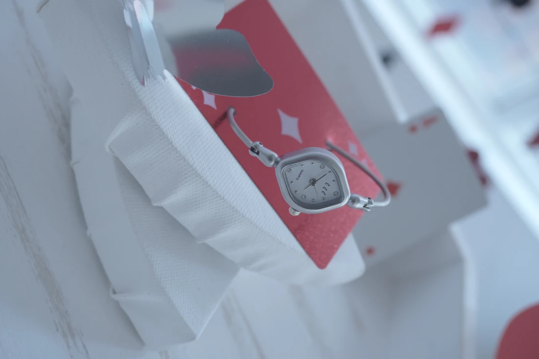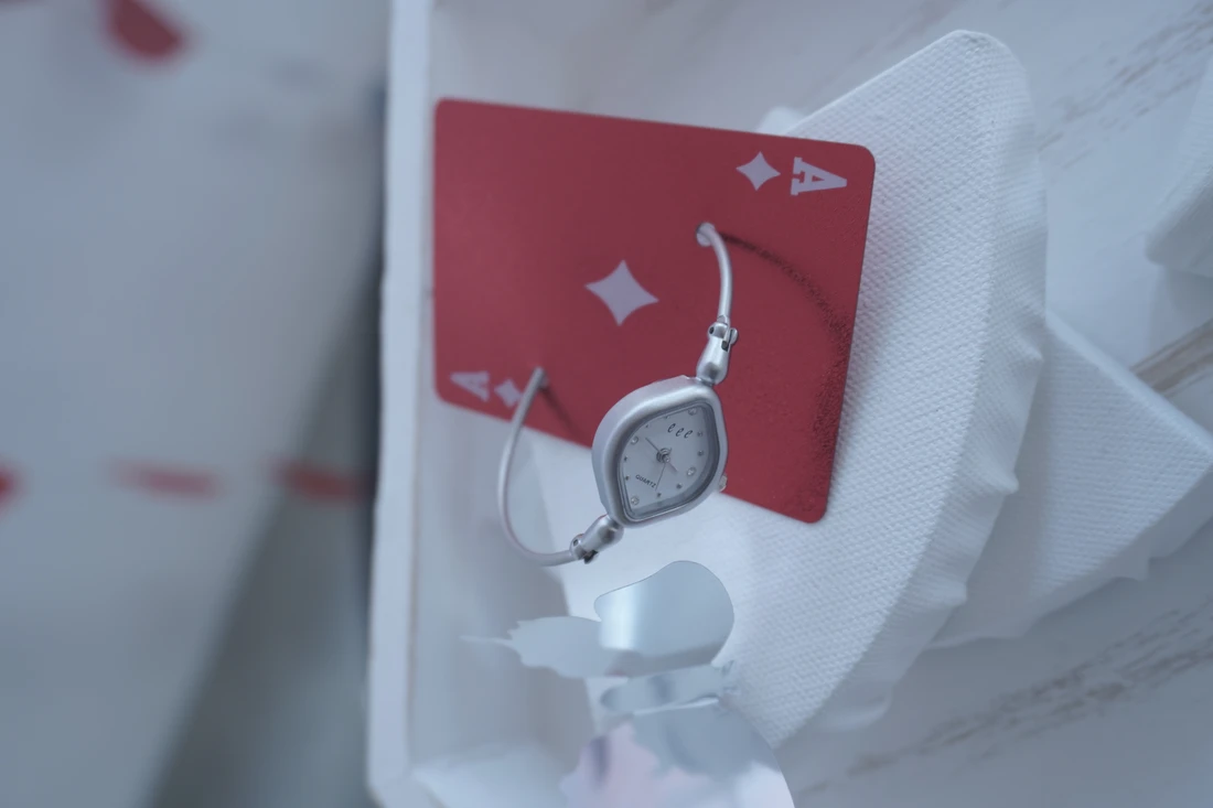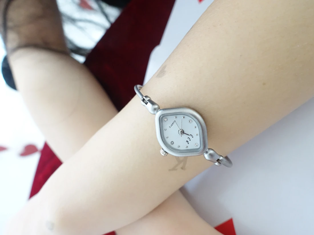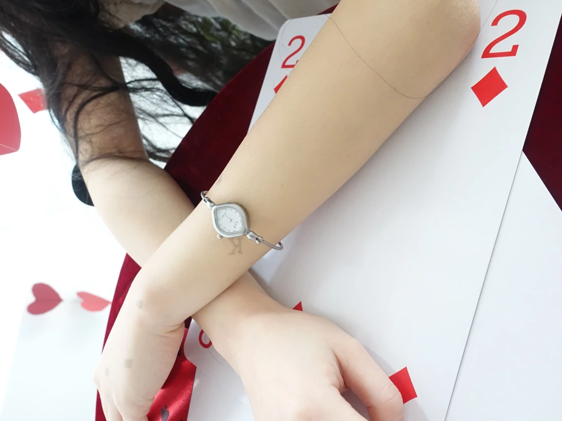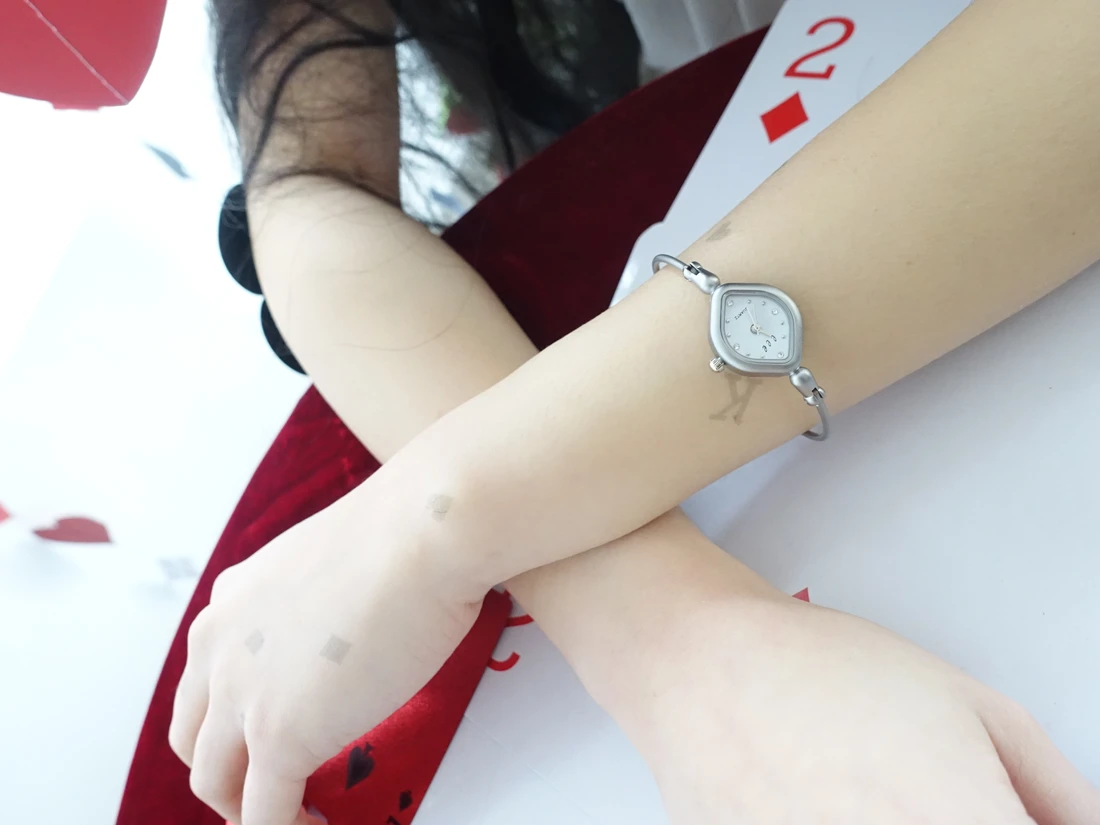 - シンプルながらもユニークなダイヤモチーフのケースで、落ち着いた深みを感じさせるデザイン