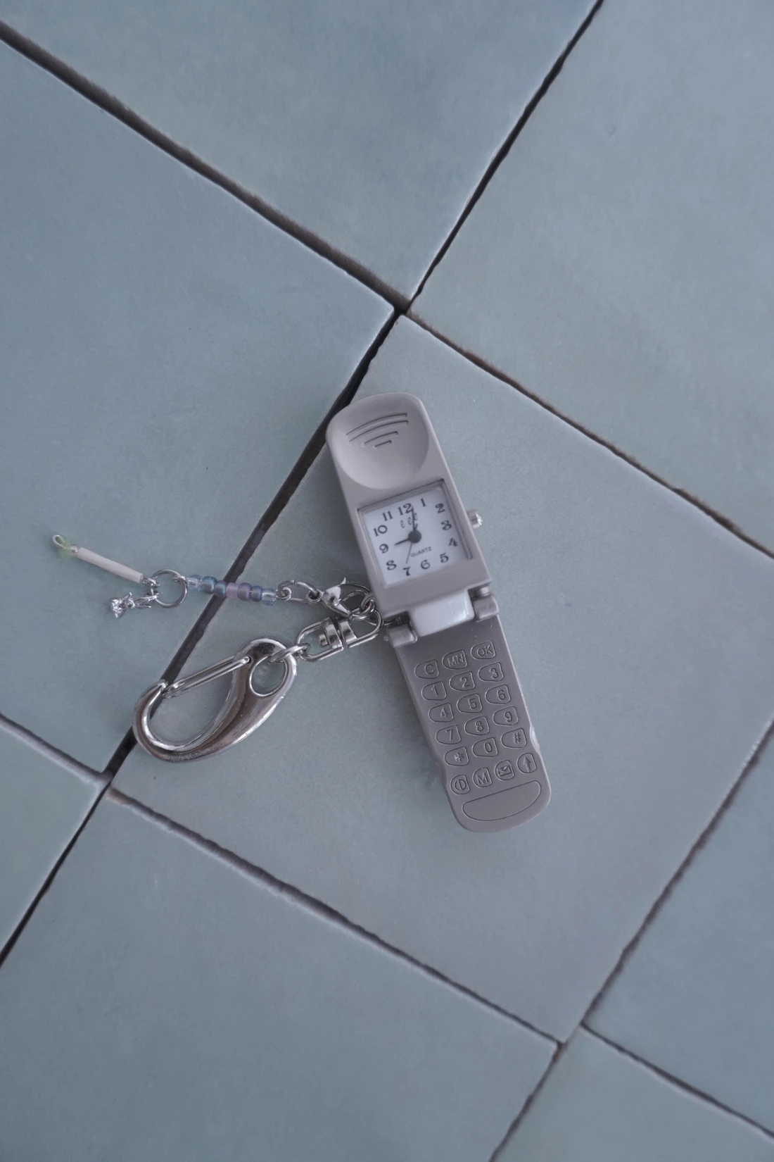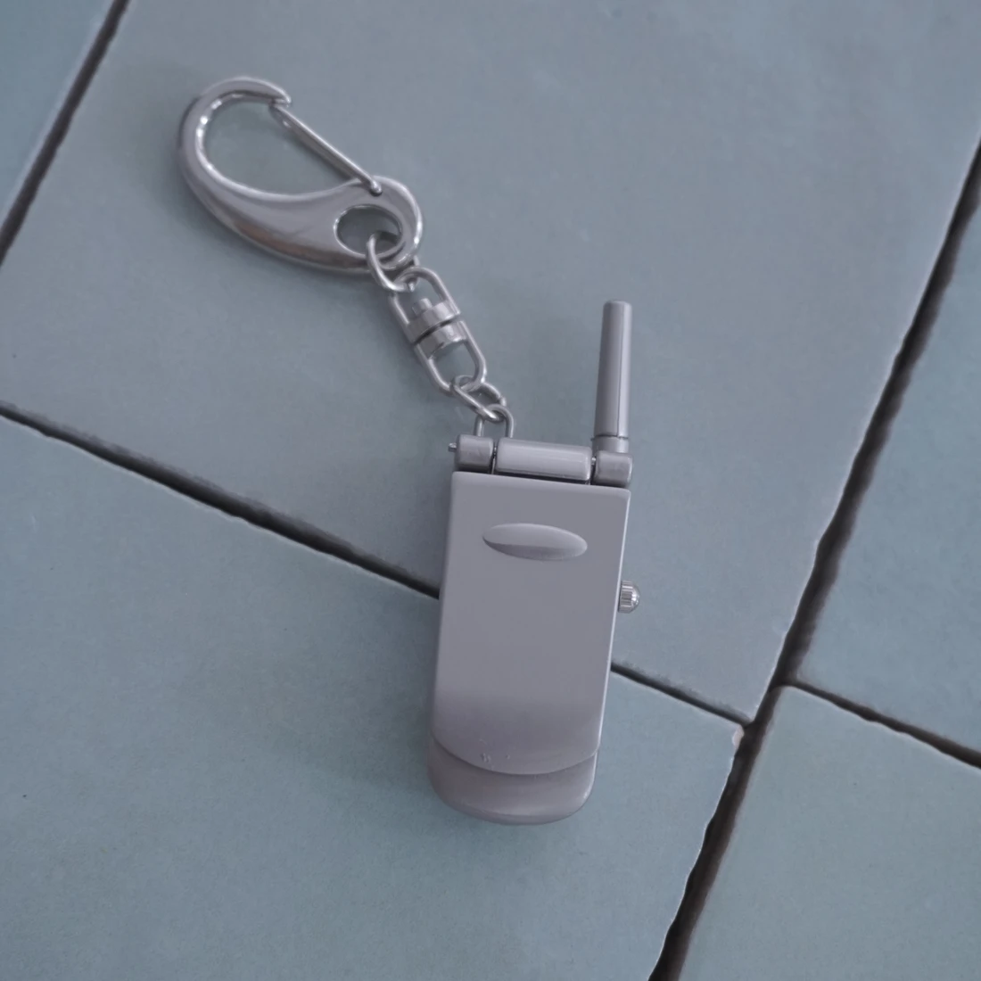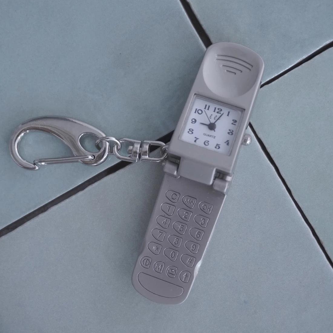- 実際の携帯電話を思わせるフリップフォン型ウォッチキーチェーン