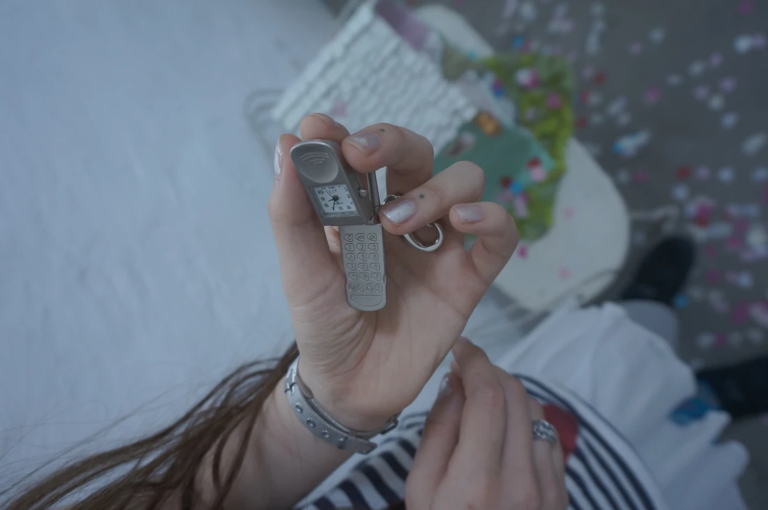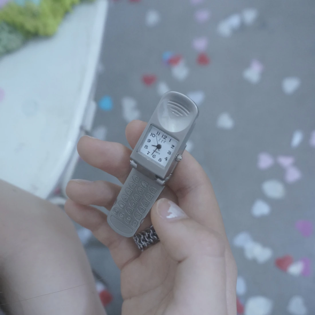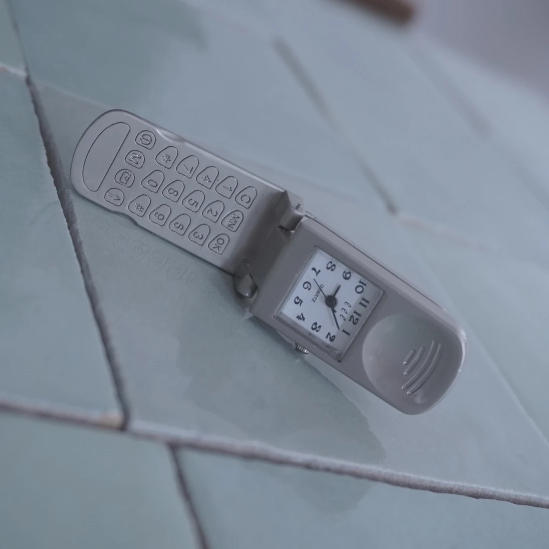 - 実際の携帯電話を思わせるフリップフォン型ウォッチキーチェーン