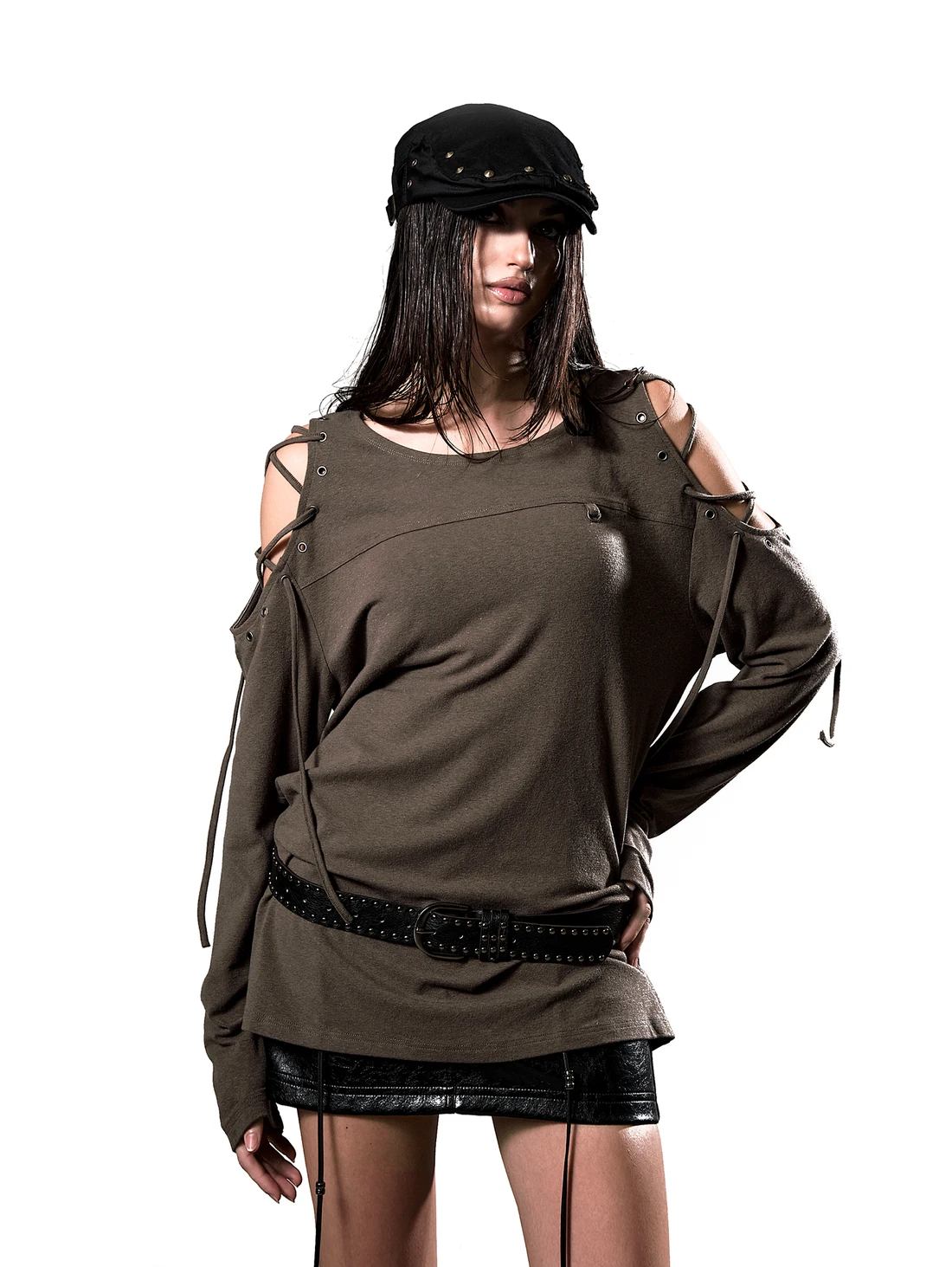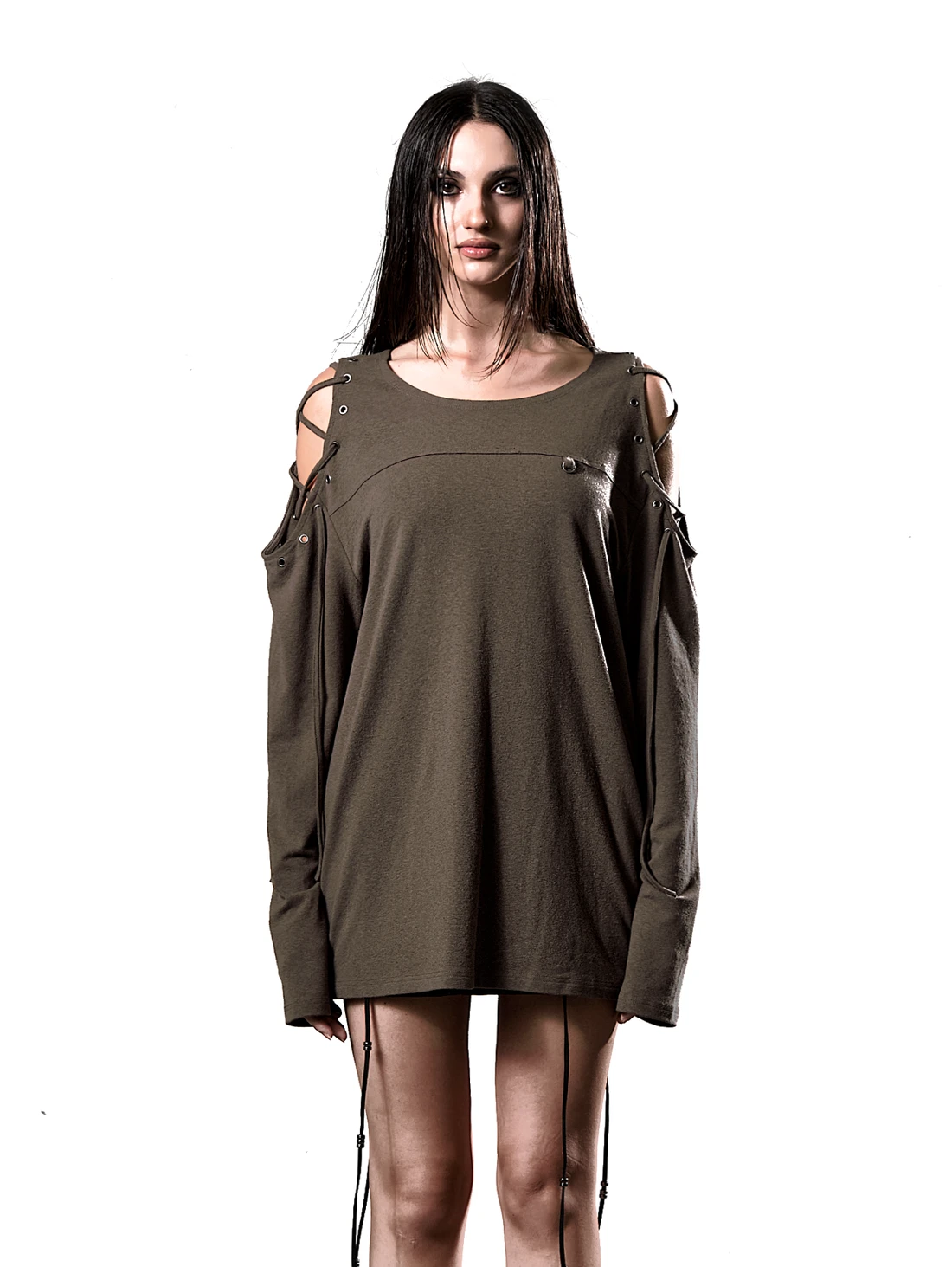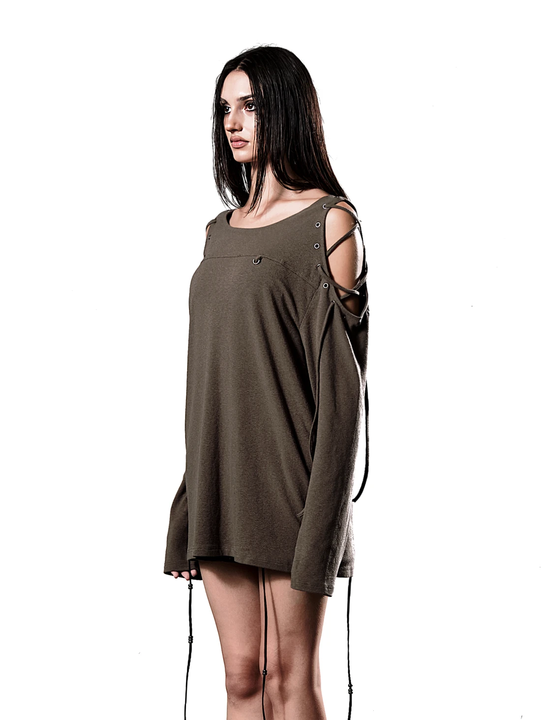 ・ソフトなコットンブレンド素材のオーバーサイズカットアウトトップ