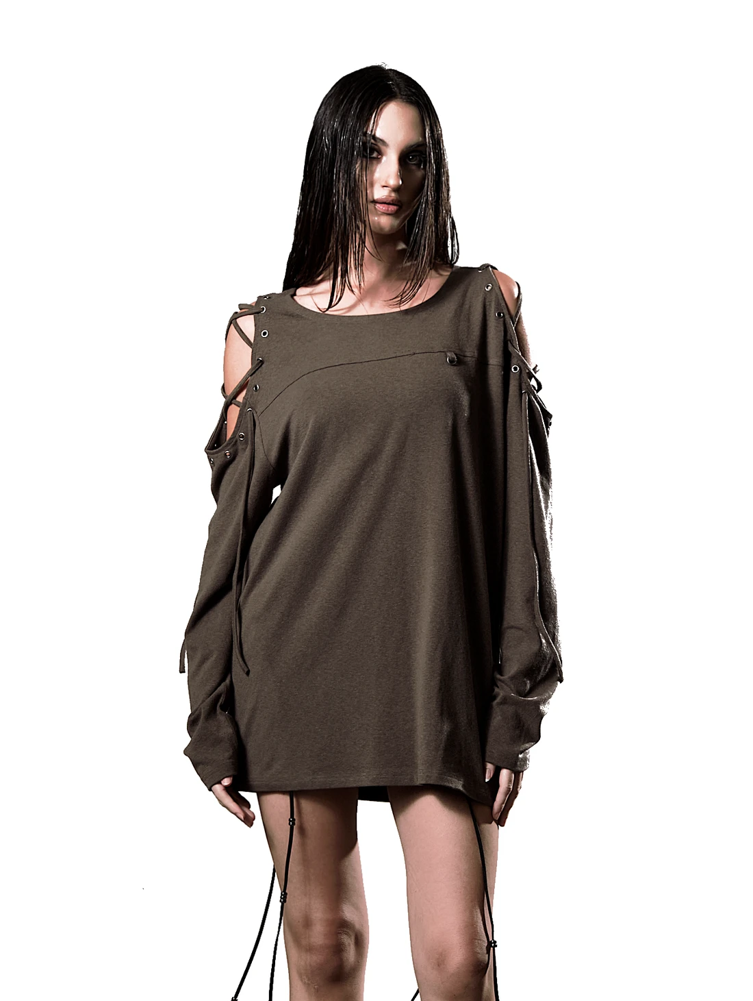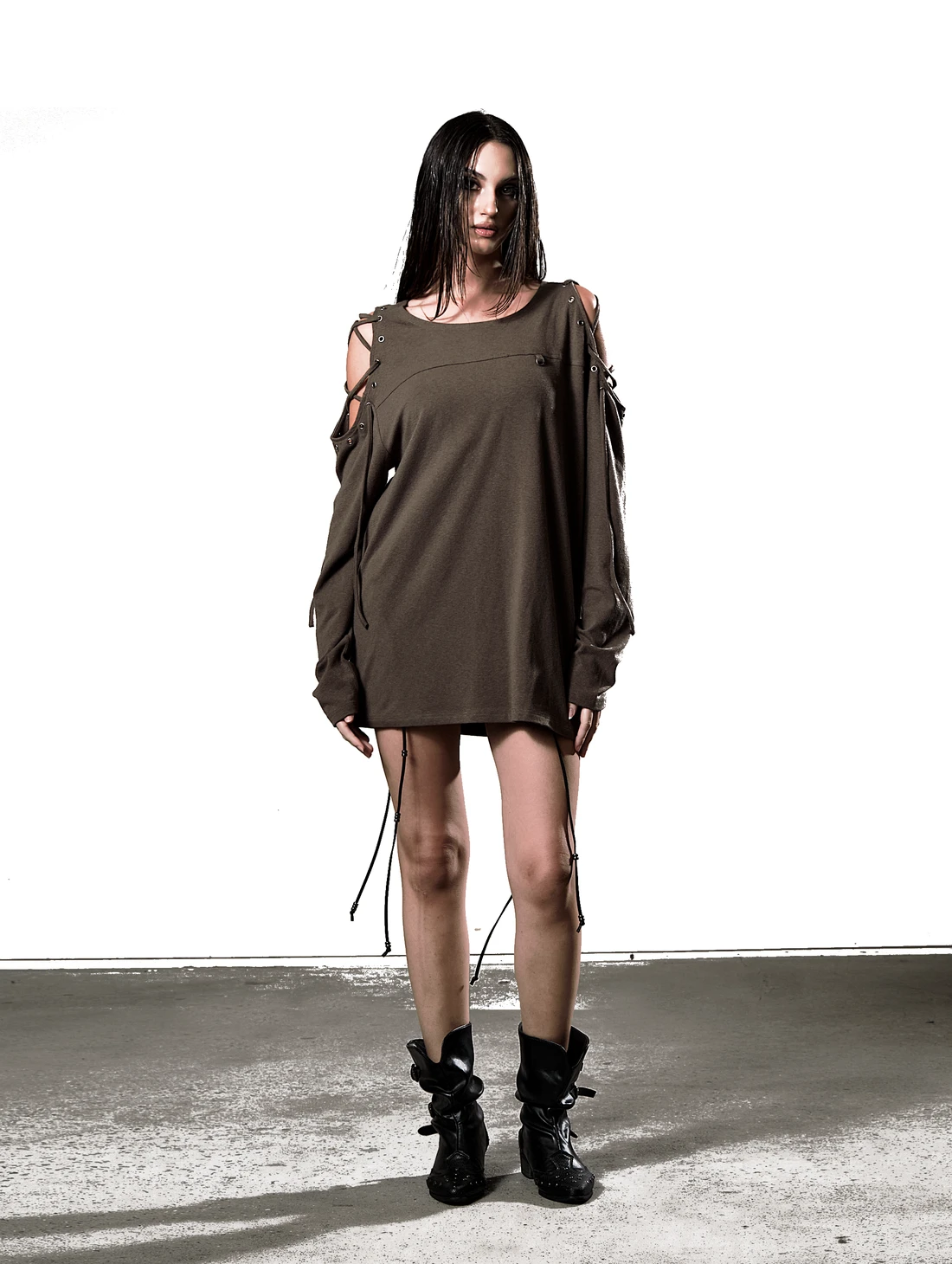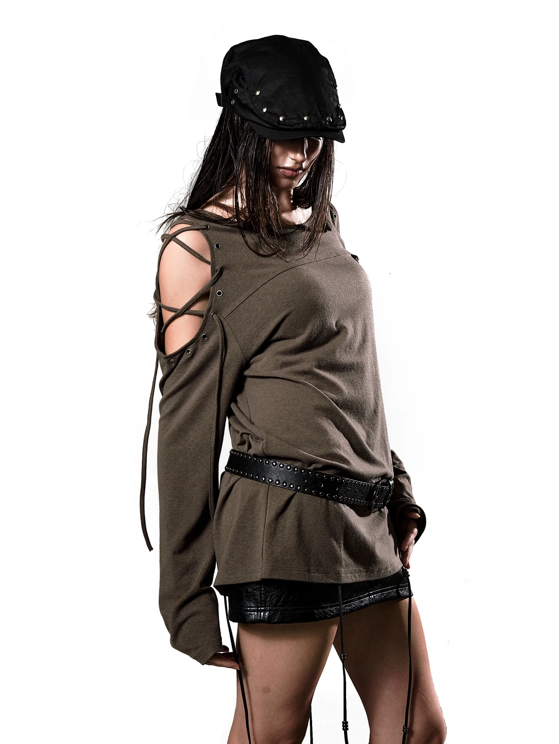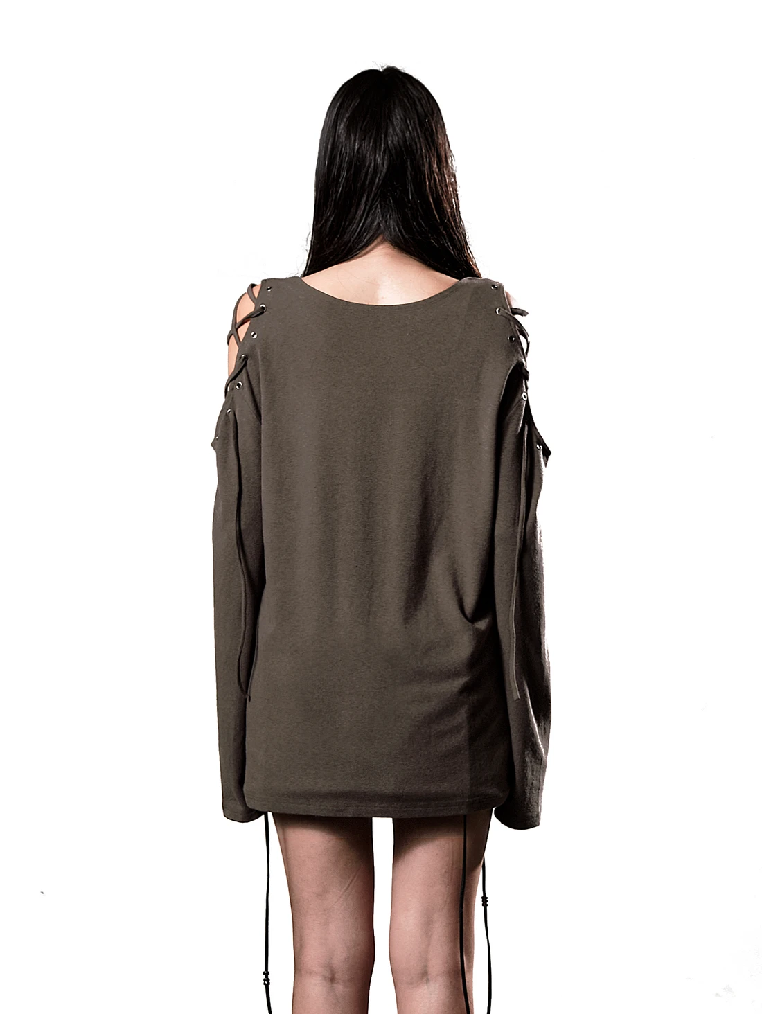 ・ソフトなコットンブレンド素材のオーバーサイズカットアウトトップ