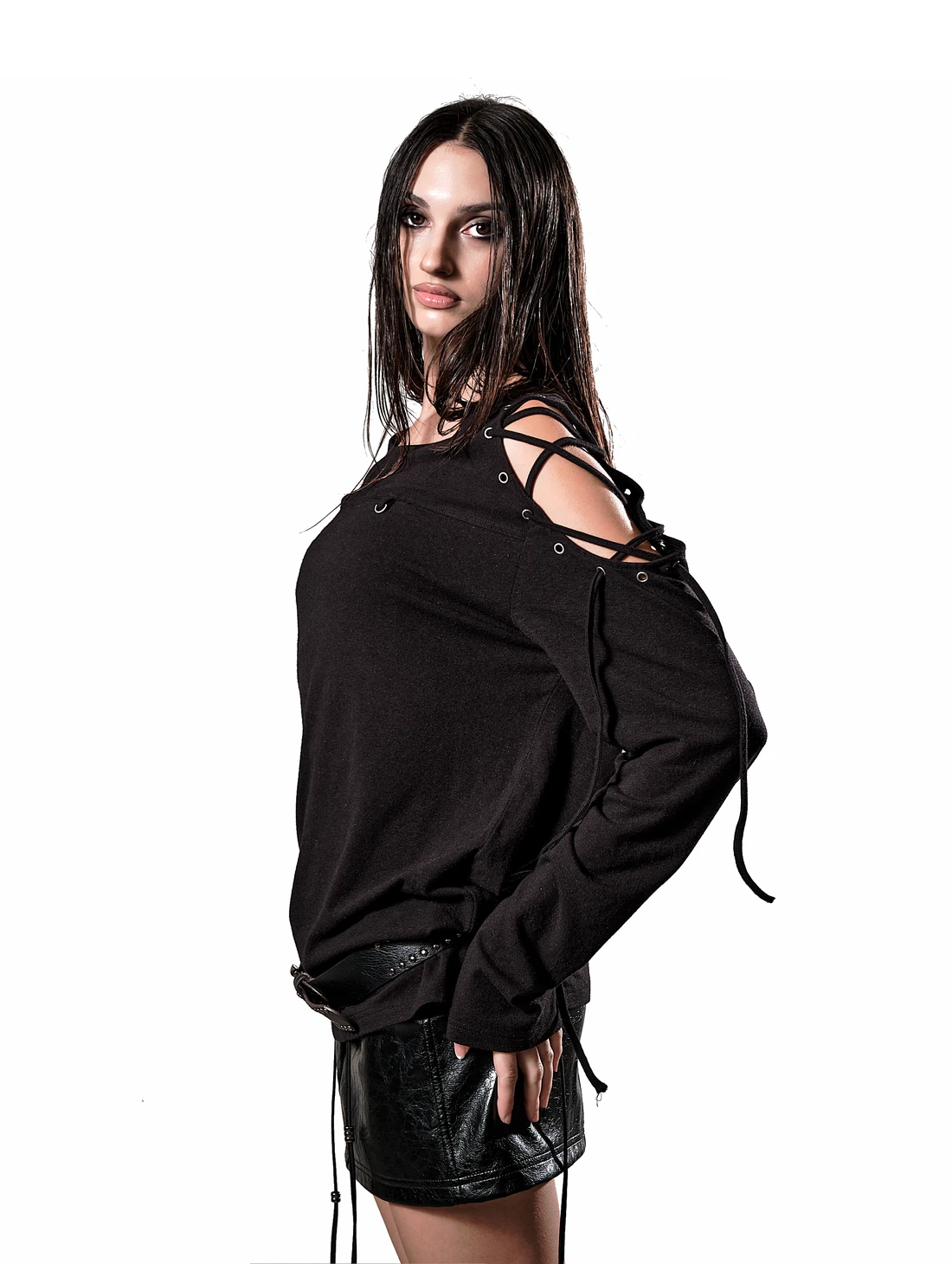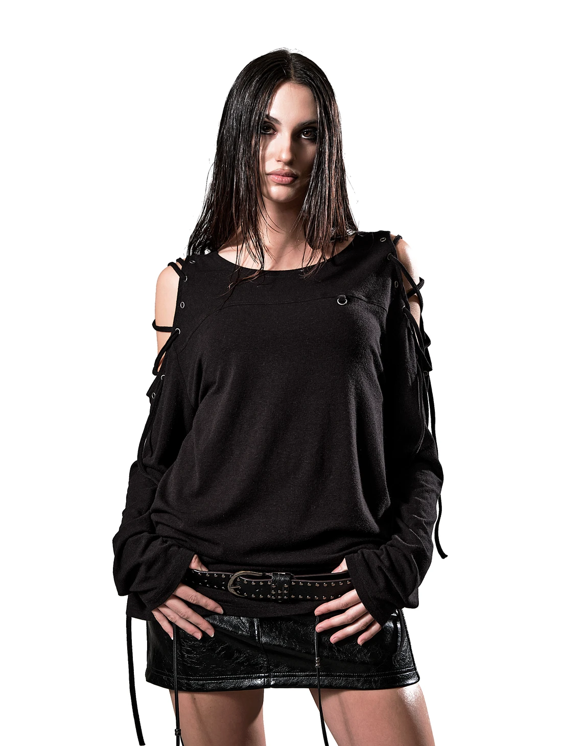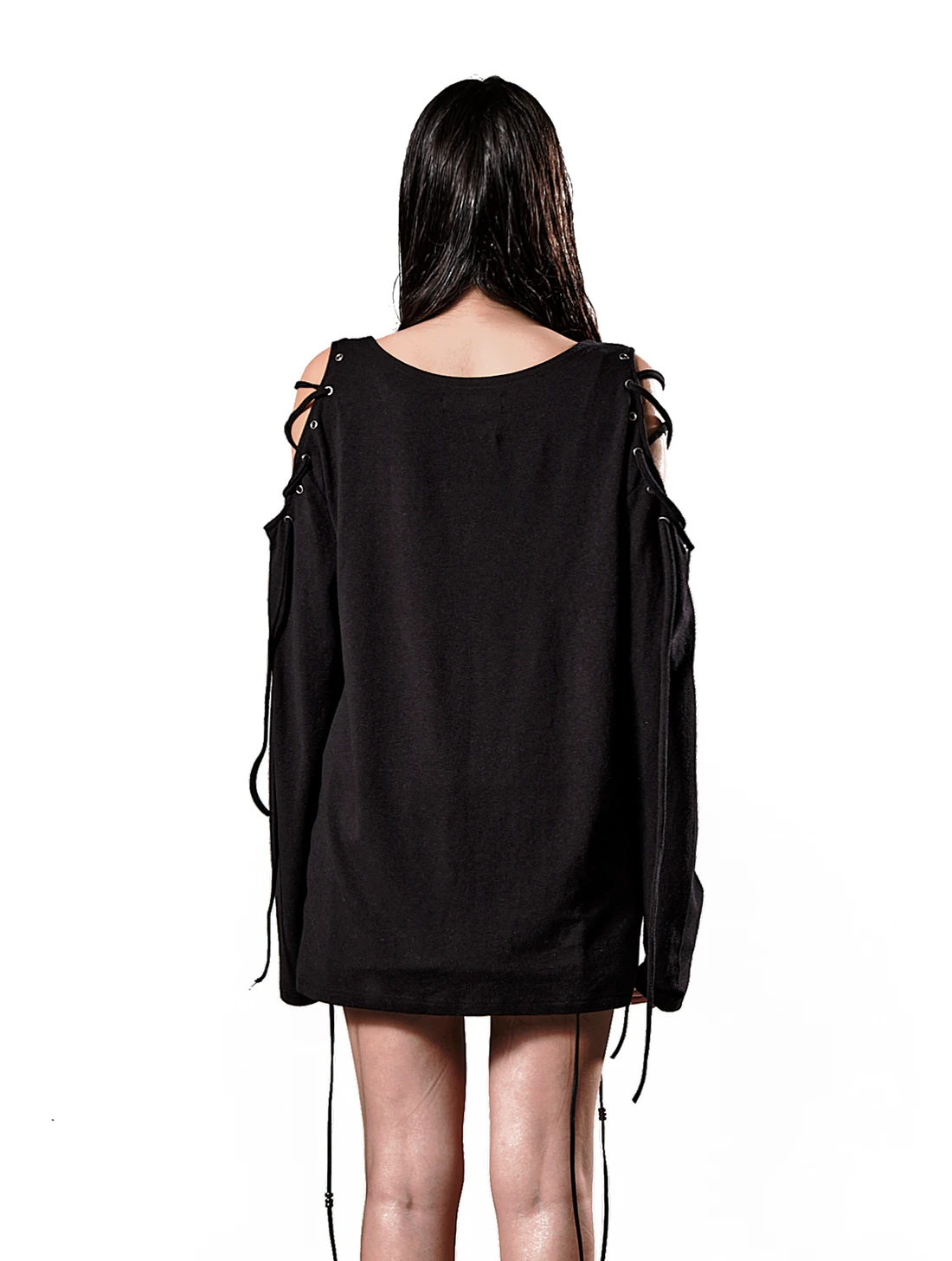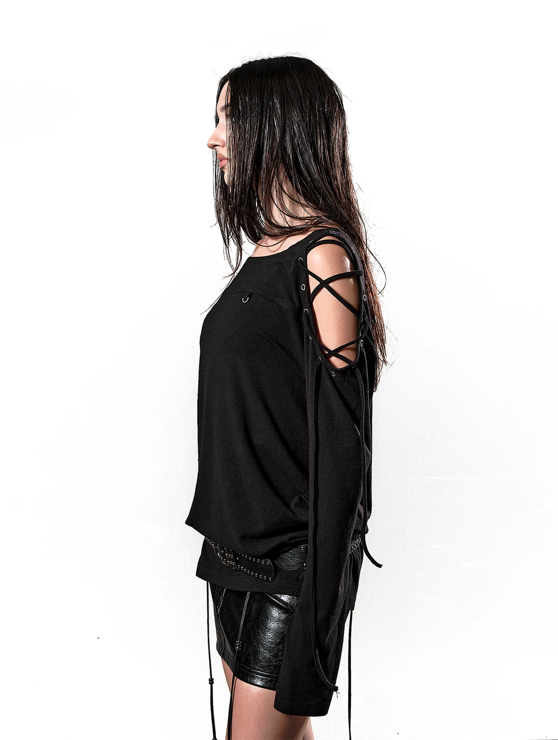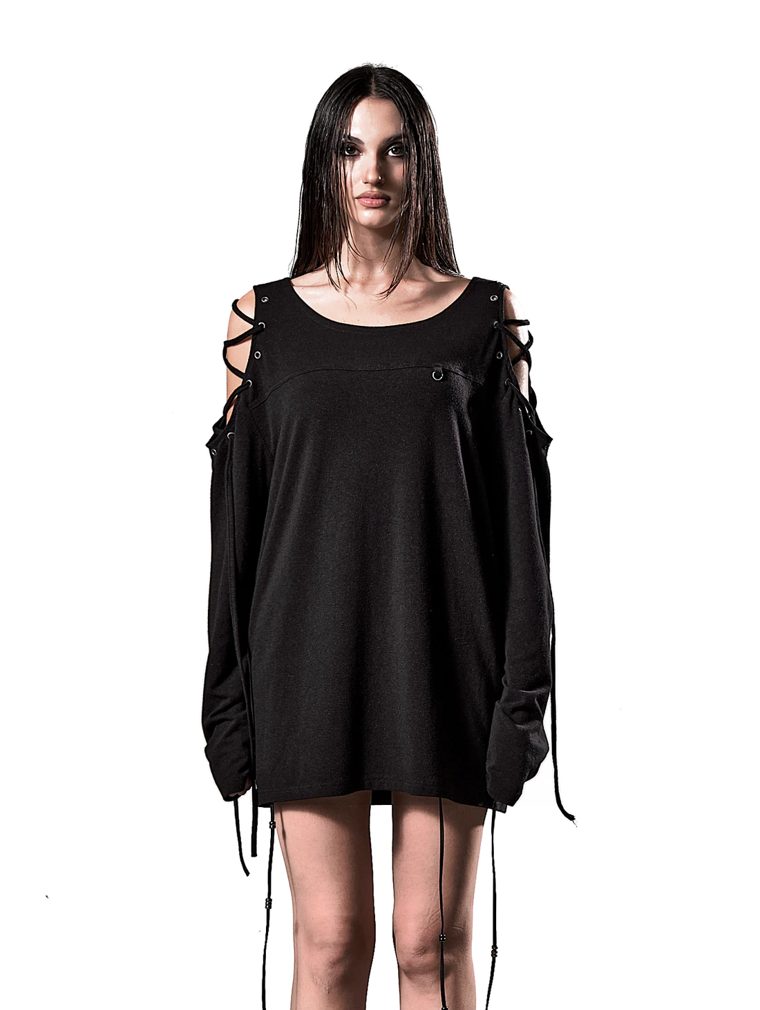・柔らかいコットン混紡素材のオーバーサイズカットアウトトップ