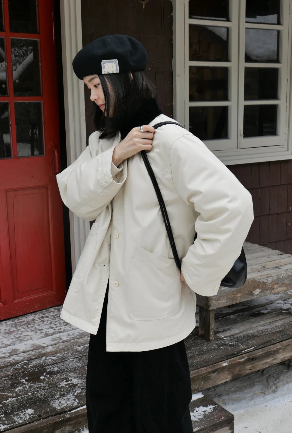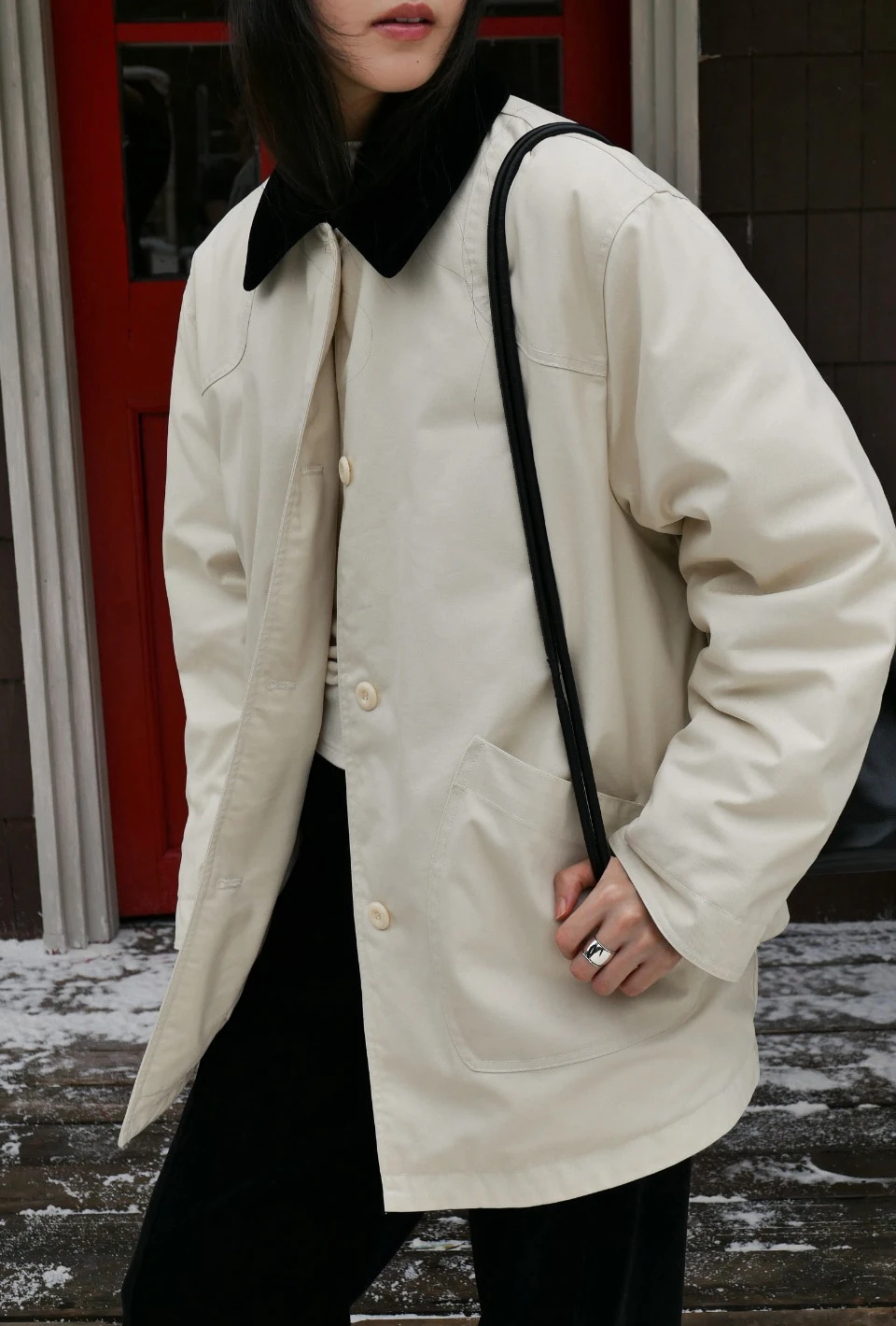 軽やかな中綿ライニングで、あたたかさと快適な着心地を兼ね備えたデザイン。