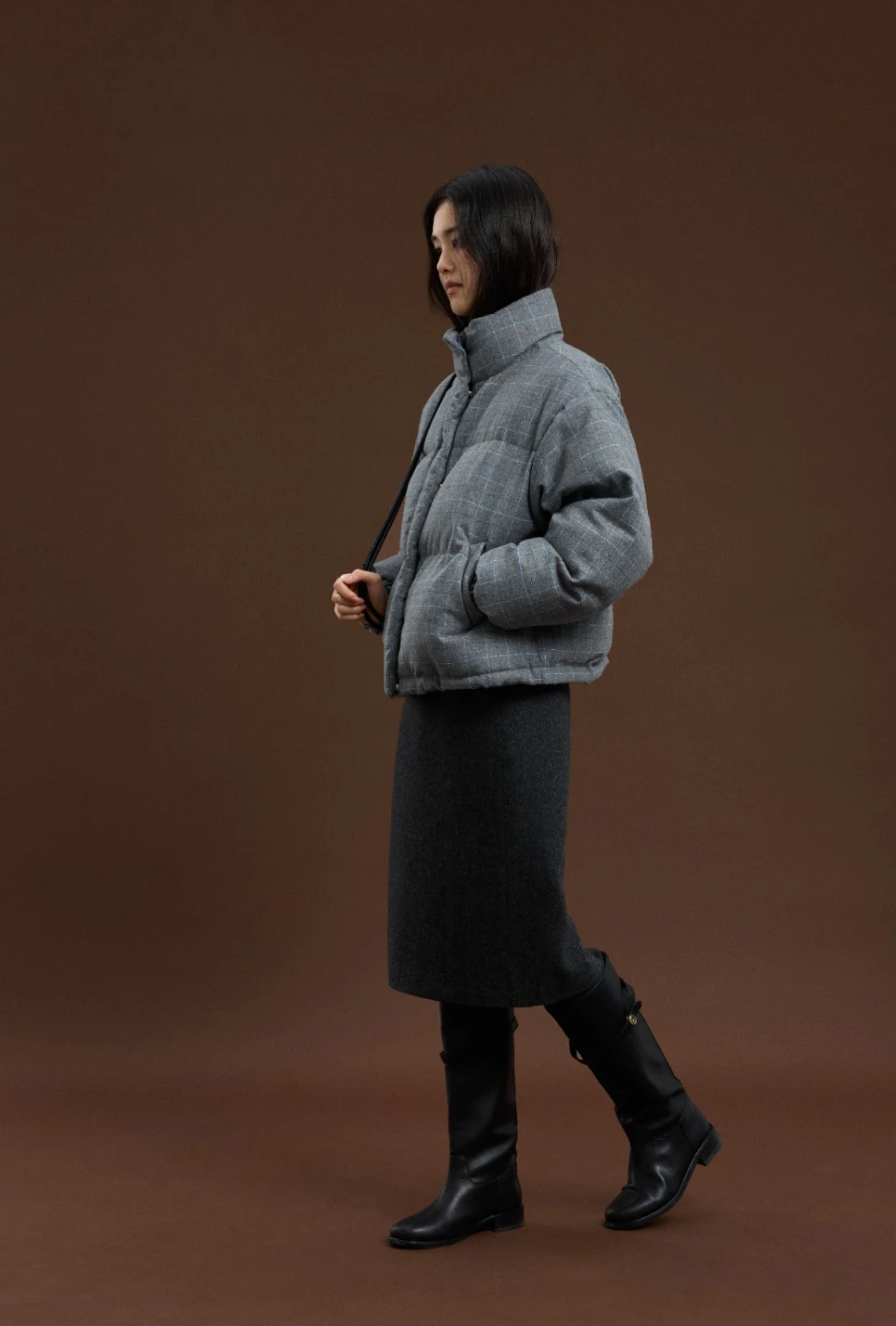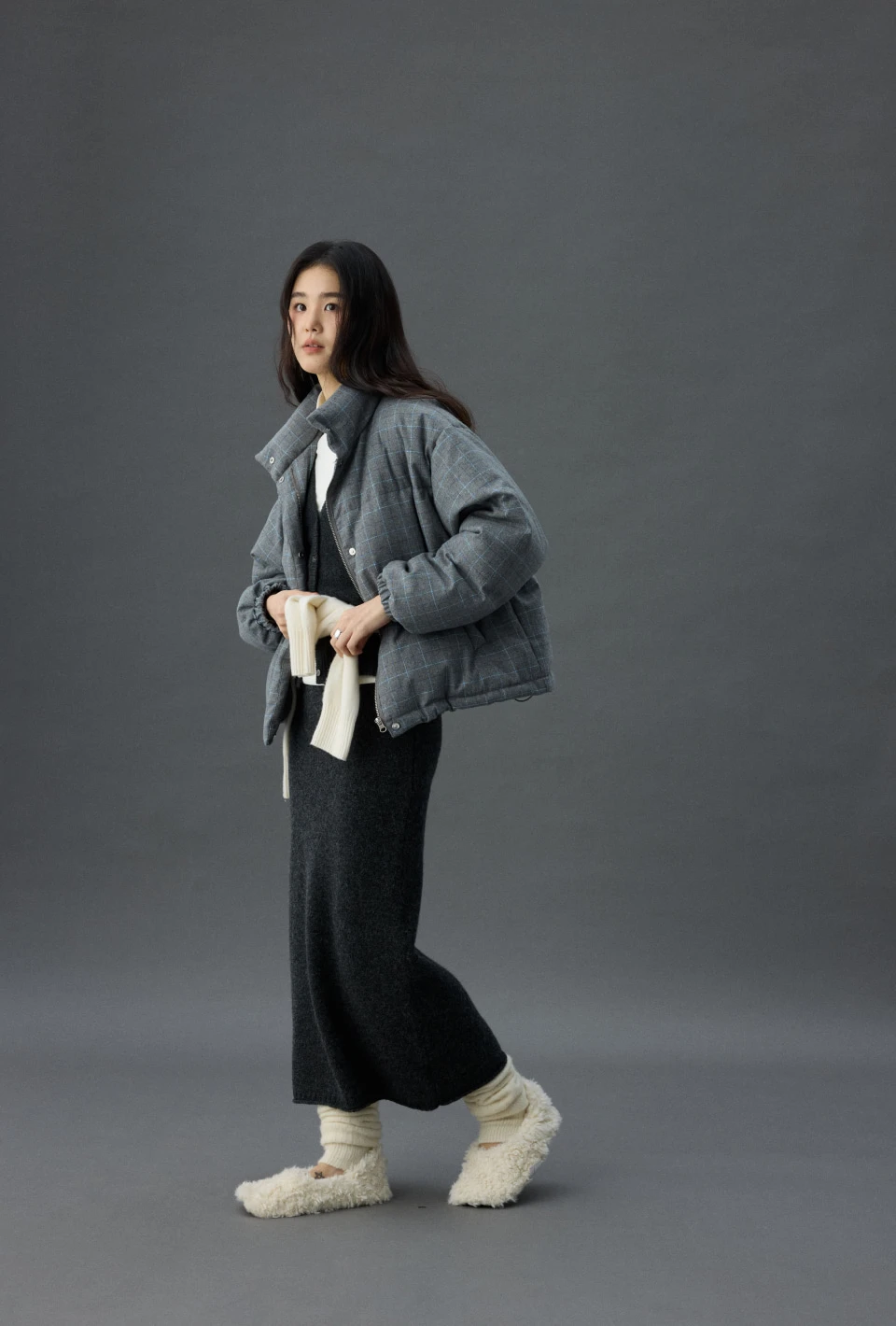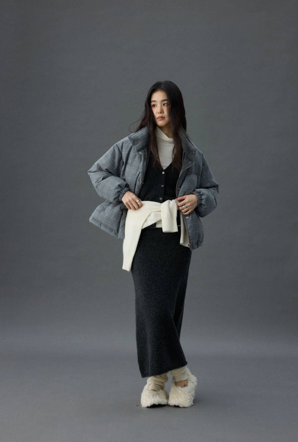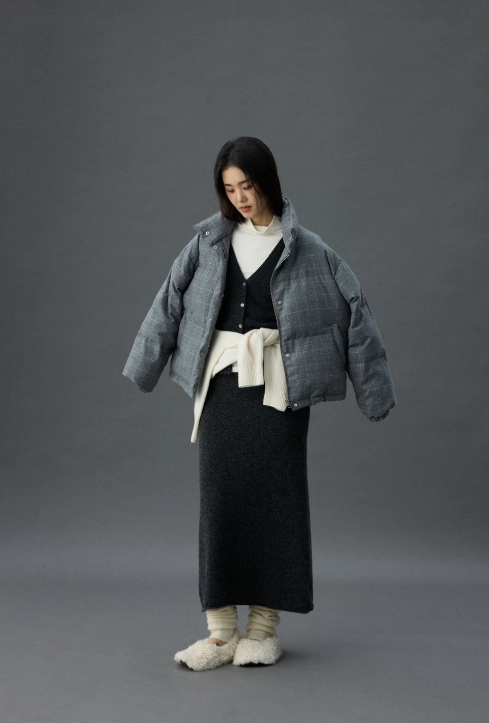 さりげないチェックの織り柄が加わり、あたたかく洗練されたムードを演出。
