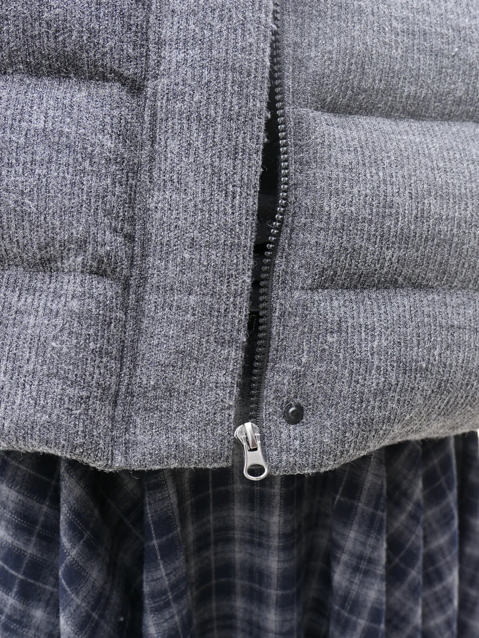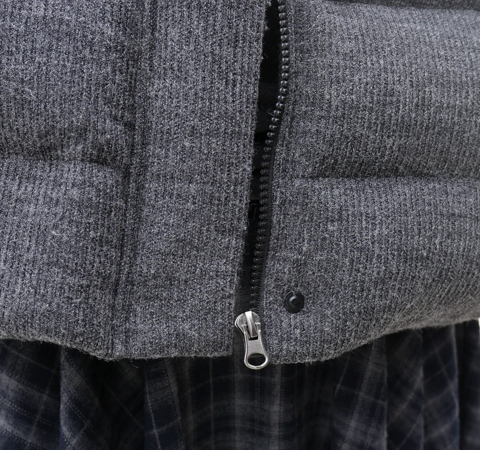 ジッパーとマグネットの二重ロックで風を防ぎ、高い保温性を実現するディテール。