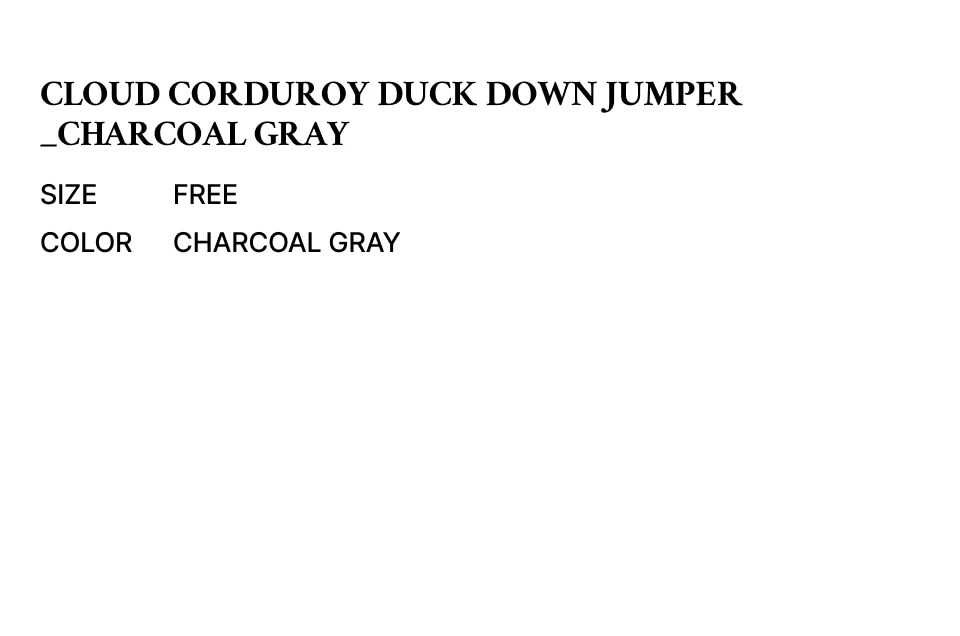 Cloud Corduroy Duck Down Jumper - Charcoal Gray