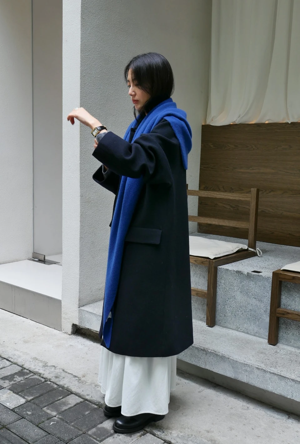 自然なバックスリットで、動きやすさとシルエットの完成度を高めたデザイン。
