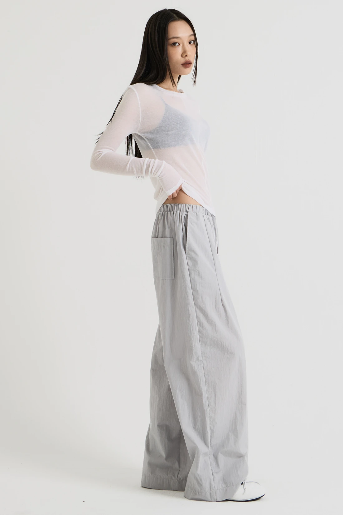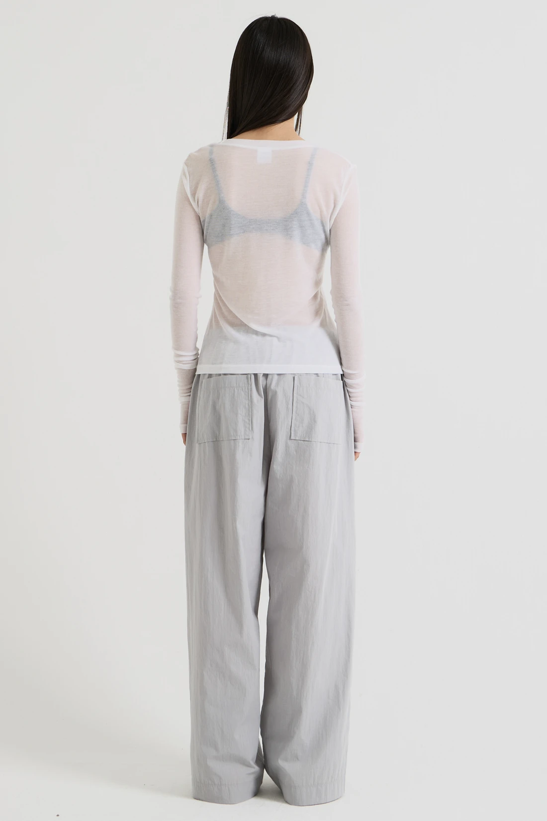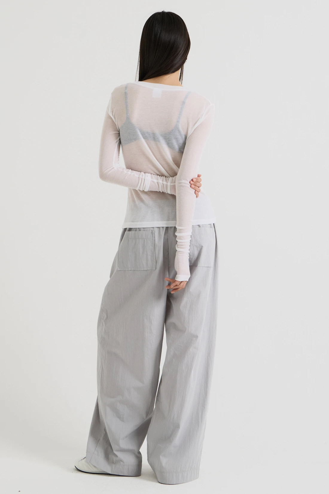 テンセルとウールをブレンドした柔らかな生地のロングスリーブトップス。手の甲まで覆う長めのスリーブで、ワイドフィットのレイヤードデザインが特徴です。 素材:テンセル 90%、ウール 10% カラー:ホワイト モデル:168cm/ONEサイズ着用 サイズ(cm) ONE SIZE:着丈 53.5/肩幅 37/バスト 37.5/袖丈 76