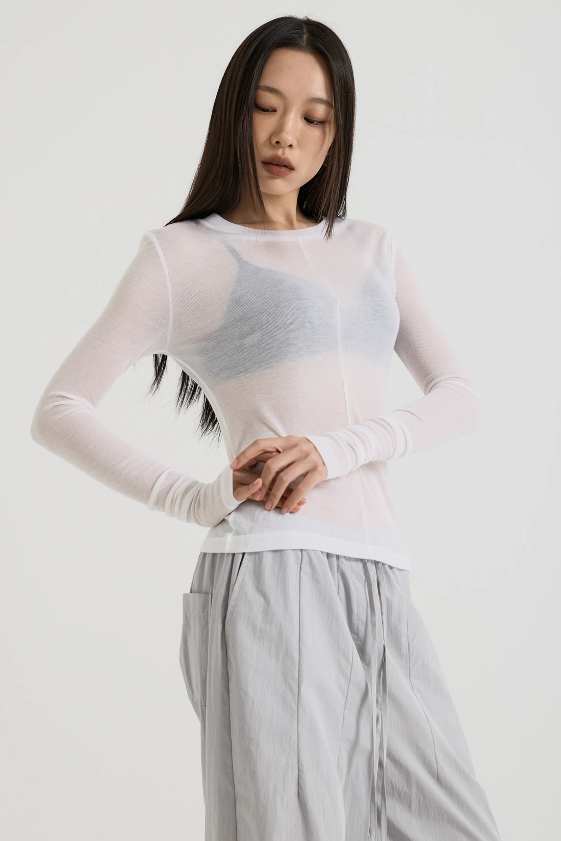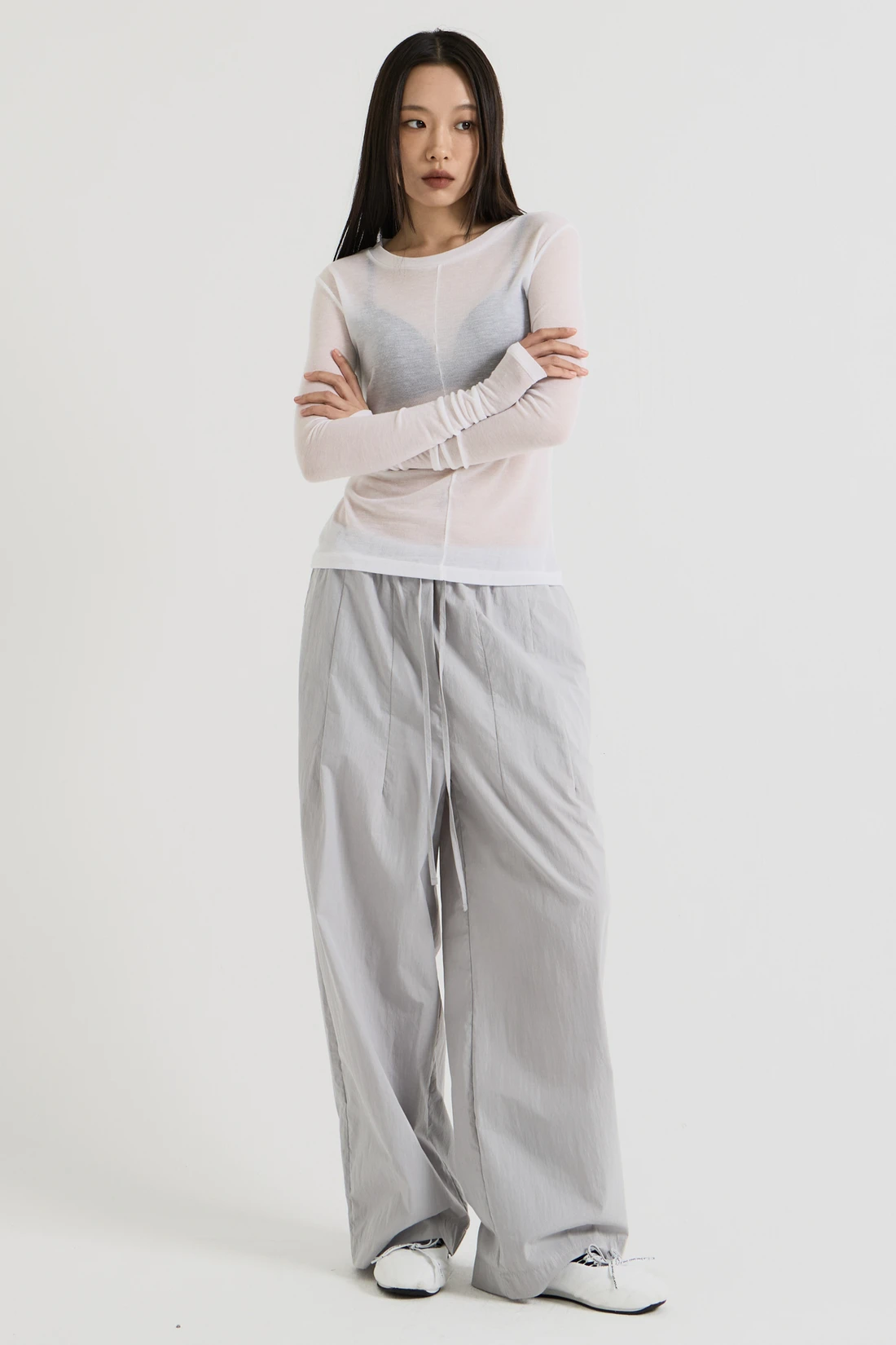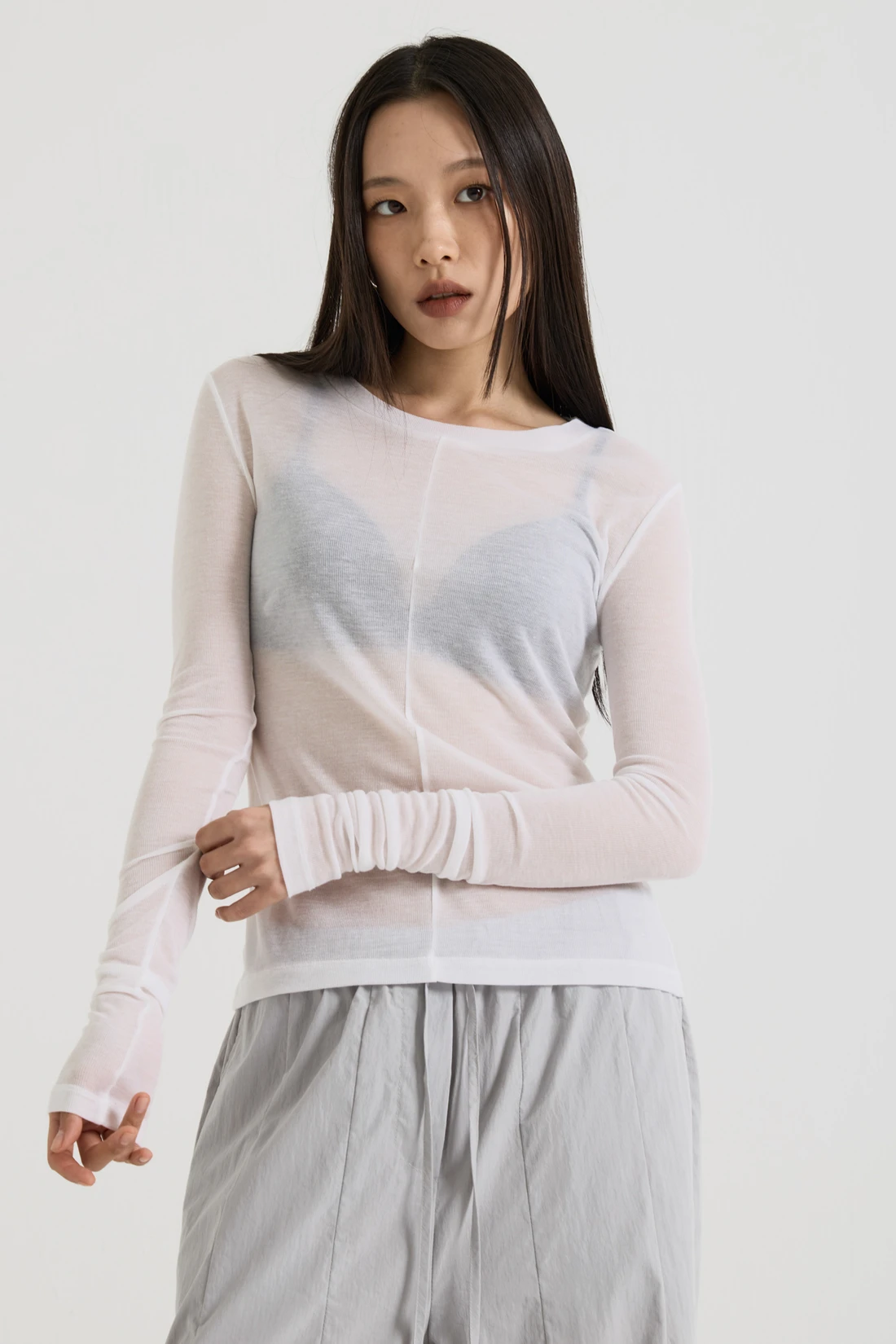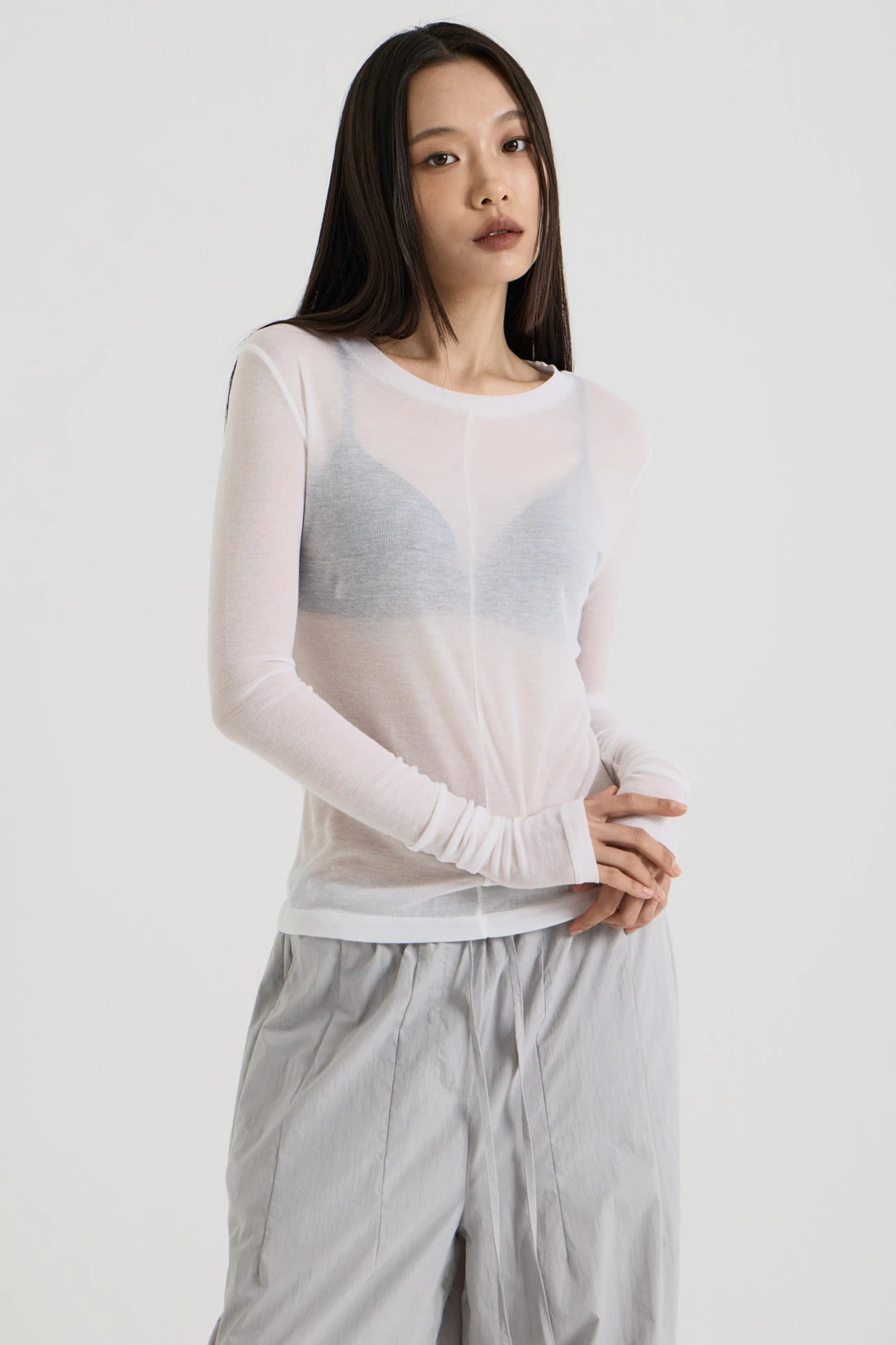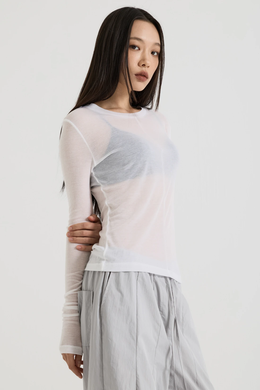フレンチウール テンセル ロングスリーブ - White