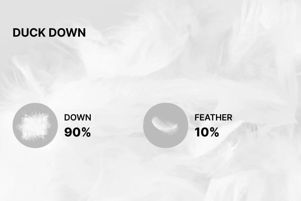 ダックダウン90%とフェザー10%の理想的なバランスで仕上げた