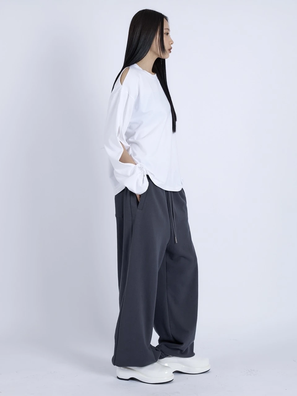 カットアウト ロングスリーブトップ - White