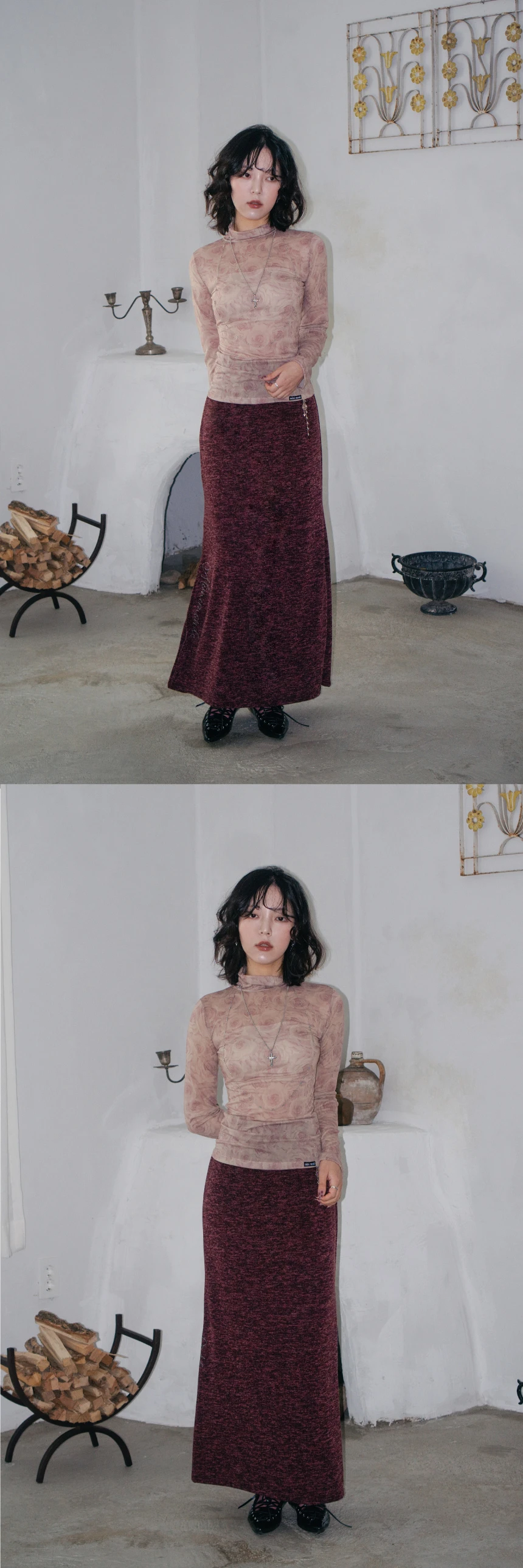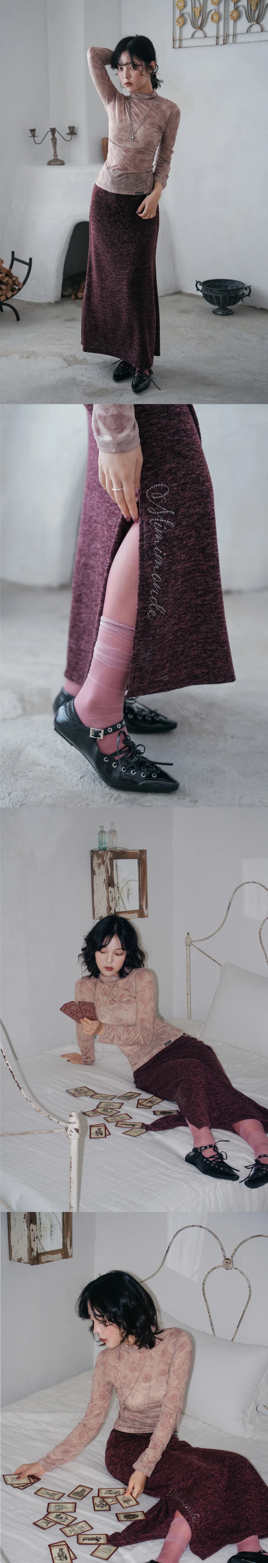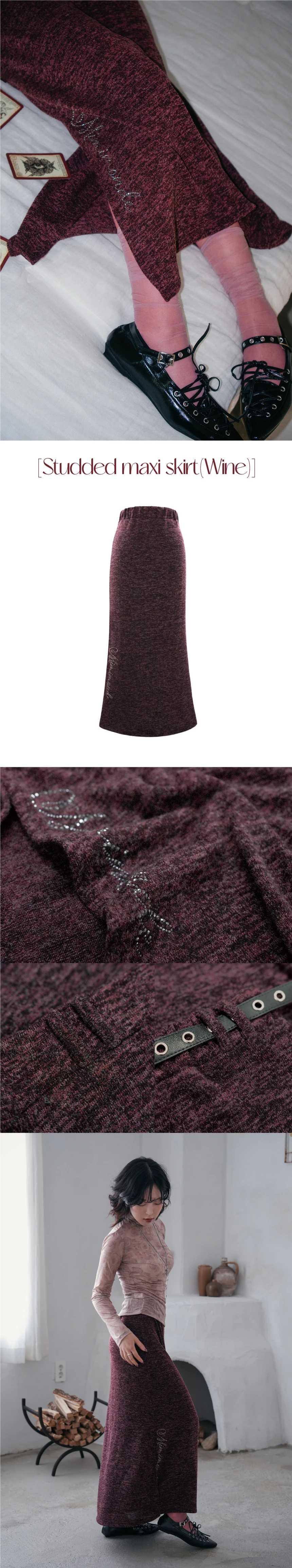 伸縮性のあるニット素材で、下着のラインが目立たない適度な厚みのマキシスカート。ウエスト全体にゴムバンドが入っており、サイズ44~66半まで対応可能です。ウエストにはベルトループ付き。スカート右下のスタッズ装飾とスリットが程よくアクセントになり、パンキッシュな雰囲気を演出。さらに、ゆったりとしたマーメイドラインがデイリー使いでもフェミニンかつセンシュアルな印象を与えます。