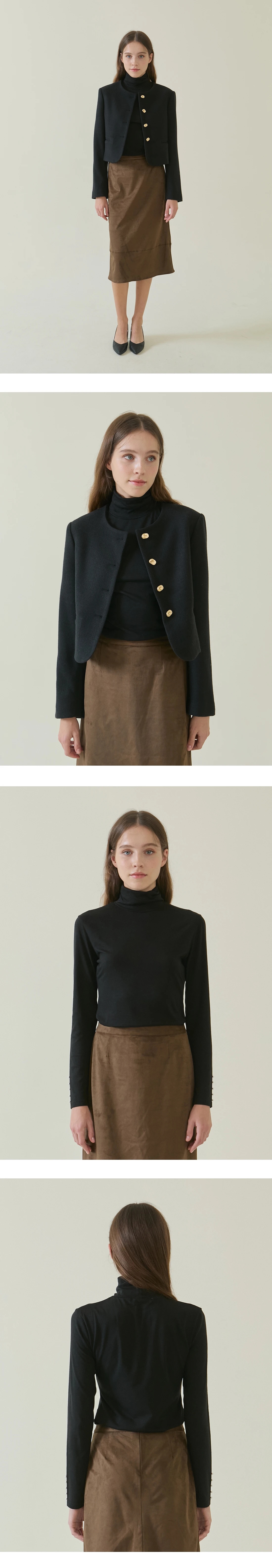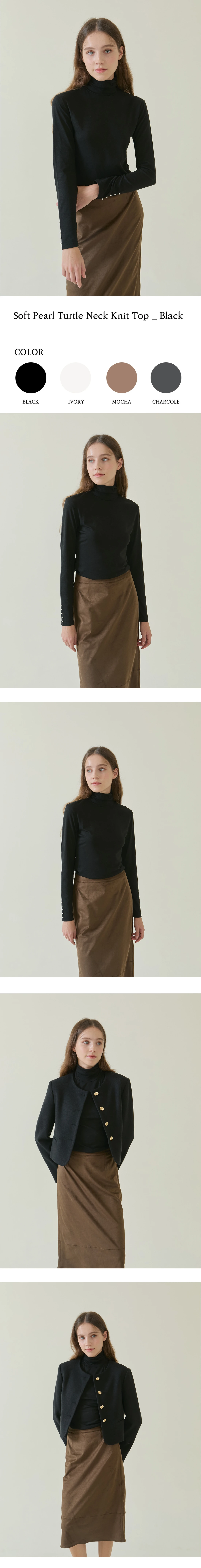 柔らかく肌に馴染むタッチ感と、さりげないパールのアクセントが魅力のSoft Pearl Turtleneck Knit Topです。 ポリエステル、レーヨン、スパンの混紡素材で仕立てられ、軽やかで伸びのある着心地を実現。肌に触れる感触もやわらかく、一日中快適に過ごせます。 袖口のパールボタンがシンプルなシルエットに上品なアクセントを添え、ジャケットやブラウスのインナーとしても洗練された印象に。秋から冬にかけてのレイヤードアイテムとしても活躍し、デイリーからフォーマルまで幅広いスタイルに自然に馴染みます。