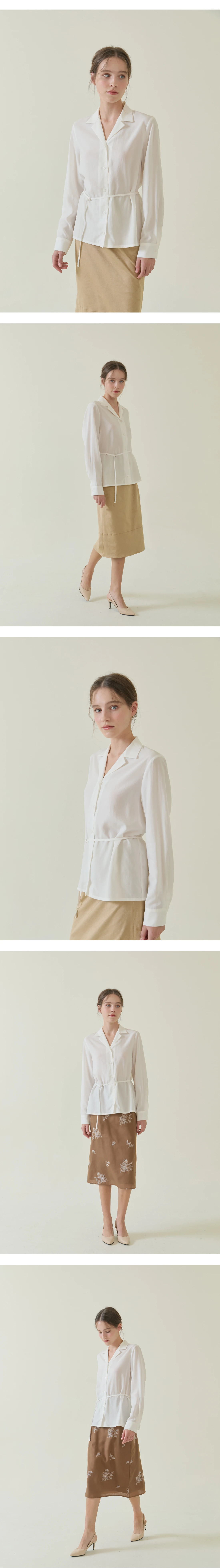柔らかく流れるシルエットの中に、控えめな上品さを宿したSeren Blouseです。テンセル100%素材で仕立てられ、肌に触れる感触はなめらか。軽やかに落ちる自然なドレープが洗練された雰囲気を演出します。 オープンカラーのデザインでネックラインを美しく見せ、付属のマットカラーのハードウェアストラップでフィット感やシルエットを自由に調整可能です。 単独でも、ジャケットのインナーとしても調和し、季節の移ろいの中で柔らかく輝くLiliumの感性を感じさせます。