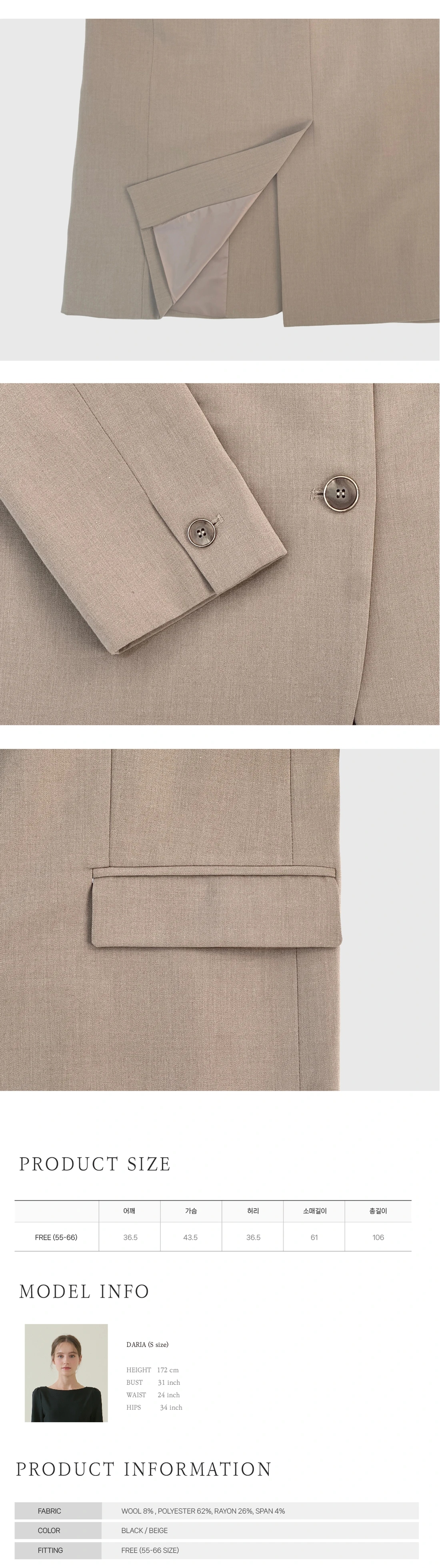 夜明けの最初の光のように、落ち着きと静けさを宿したAube Jacketです。セミオーバーサイズのシルエットを持つシングルブレザー。しっかりとしたウール混紡素材で仕立てられ、柔らかさがありながら形を美しくキープ。長く愛用できるクラシックな一着です。 女性らしい雰囲気を添えるベージュと、タイムレスなクラシックを象徴するブラックの2色展開。付属のベルトディテールでシルエットに変化をつけ、ウエストラインを強調した多様なスタイリングが可能です。