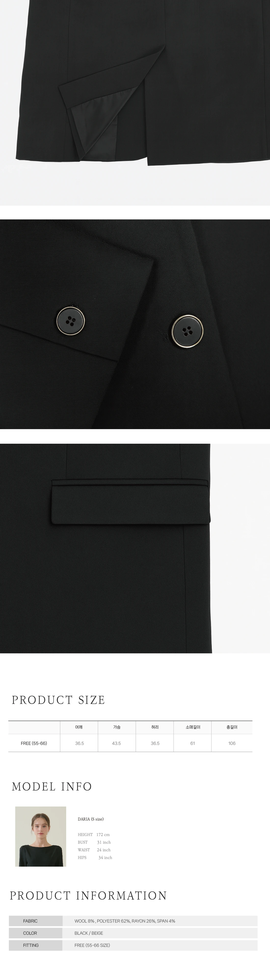 夜明けの最初の光のように、落ち着きと静けさを宿したAube Jacketです。セミオーバーサイズのシルエットを持つシングルブレザー。しっかりとしたウール混紡素材で仕立てられ、柔らかさがありながら形を美しくキープ。長く愛用できるクラシックな一着です。 女性らしい雰囲気を添えるベージュと、タイムレスなクラシックを象徴するブラックの2色展開。付属のベルトディテールでシルエットに変化をつけ、ウエストラインを強調した多様なスタイリングが可能です。