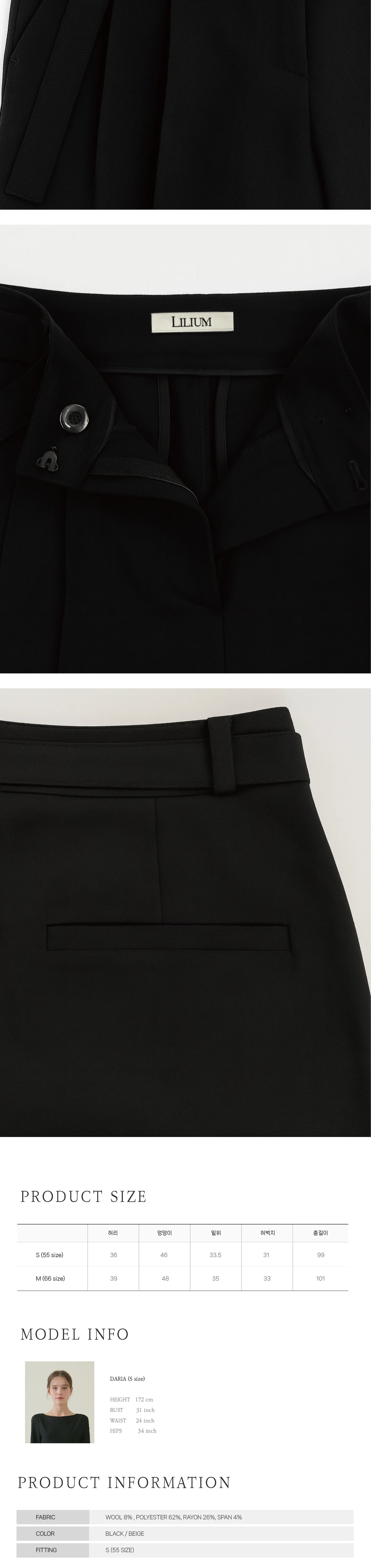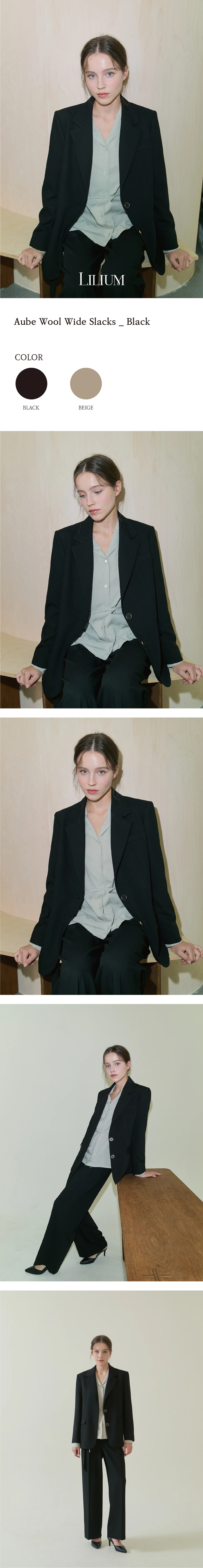 Aube Wool Blazer Jacketと同素材で仕立てられ、セットアップとしても着用できるAube Wool Wide Slacksです。 ウール混紡素材特有のしっかりとした生地感と柔らかくしなやかな着心地が調和し、崩れず上品なシルエットを実現します。ゆったりとしたワイドフィットで体型を自然にカバーしつつ、まっすぐ落ちるラインがクラシックな雰囲気を演出。 同素材のベルト付きで、完成度の高いスタイリングが可能です。丁寧な縫製で仕上げられており、長く愛用できるLiliumのシグネチャークラシックアイテムです。