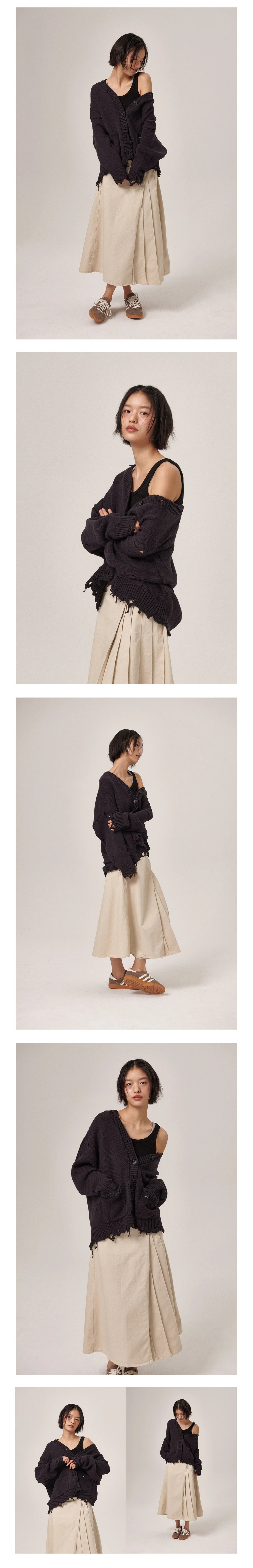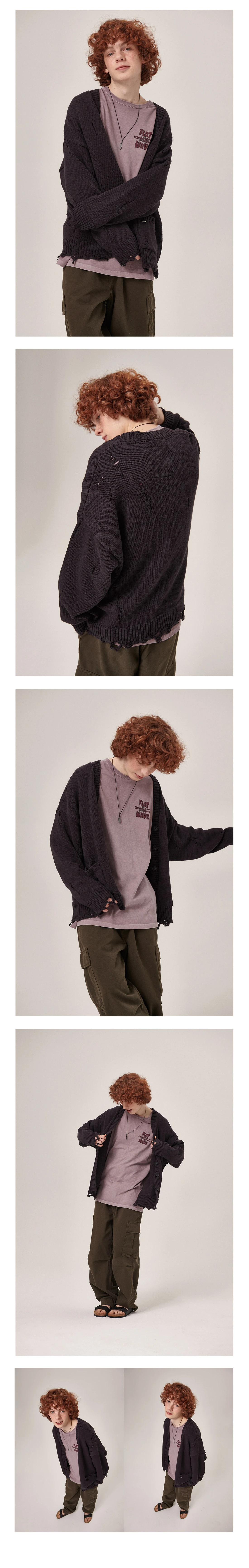- 本製品はヴィンテージ感のある組織感とテクスチャーを活かしたニットで、一部の糸のほつれや粗い編み目は意図されたデザインです。
