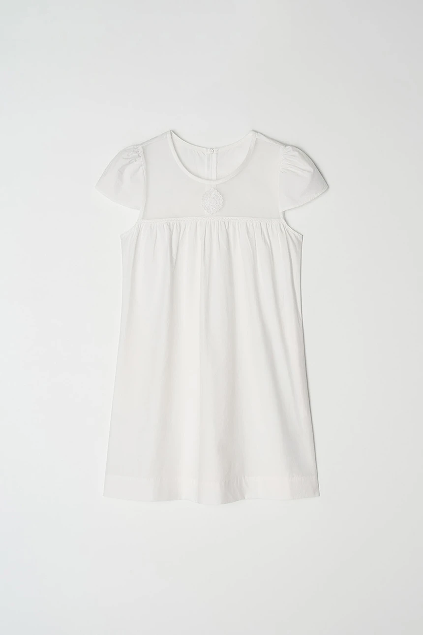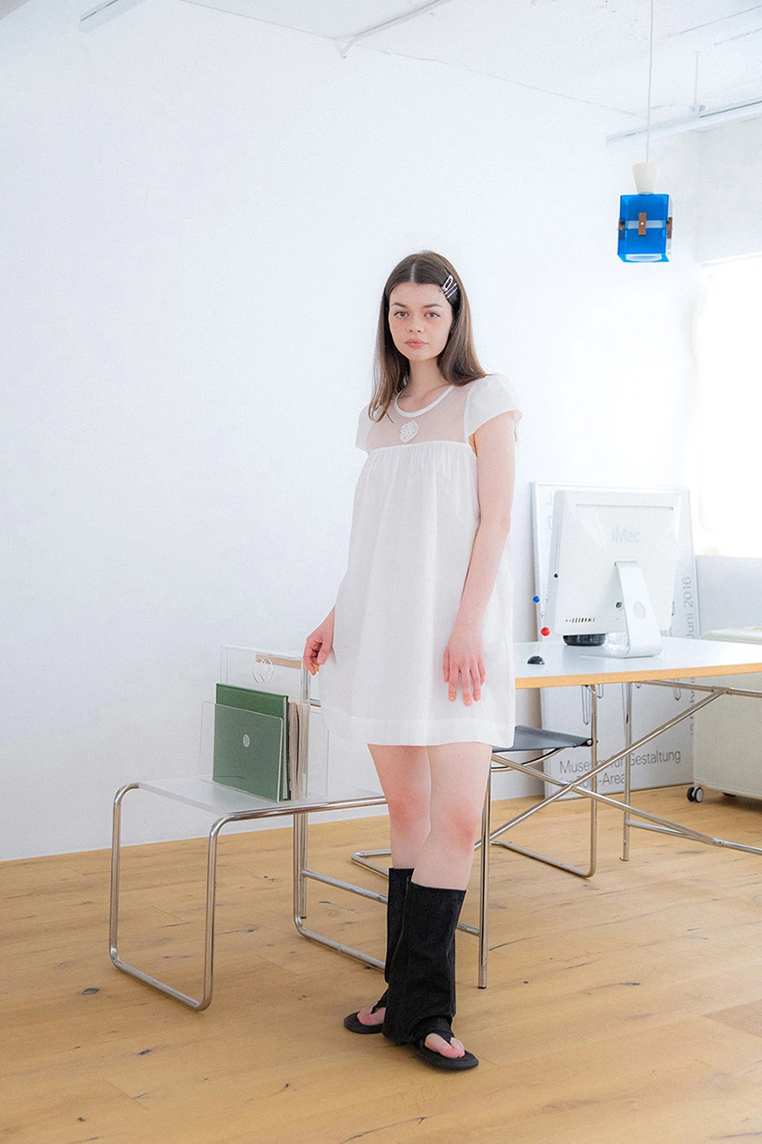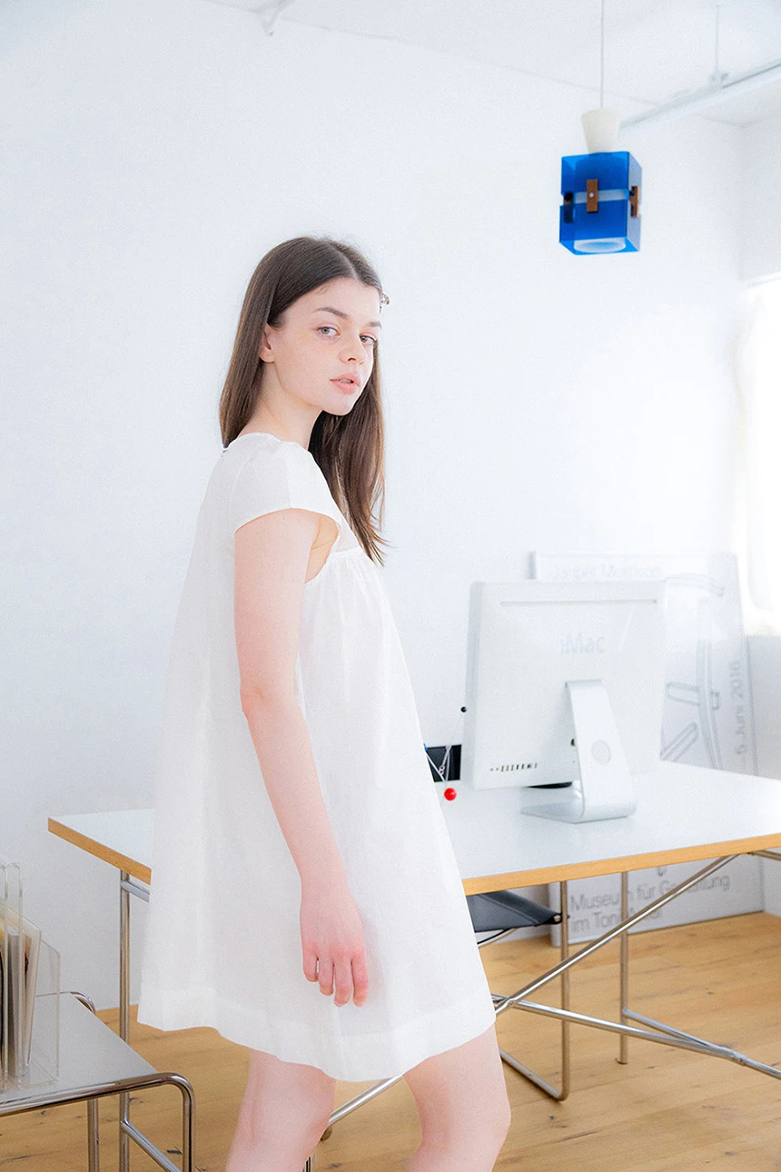 フェミニンで愛らしいムードあふれるベビードールフィットのワンピース。控えめな透け感が魅力のメッシュ素材とモチーフレースのディテールがポイントとなり、ロマンティックで少女らしい雰囲気を演出します。膝上丈の可愛らしい着丈とパフスリーブで、1枚で着用しても十分に存在感のあるラブリーなアイテムです。 COLOR : white FABRIC: Cotton 100% / P 100% (Mesh) CARE:ドライクリーニング/蛍光増白剤・漂白剤の使用不可/日陰で平干し乾燥/乾燥機使用禁止 Made in Korea
