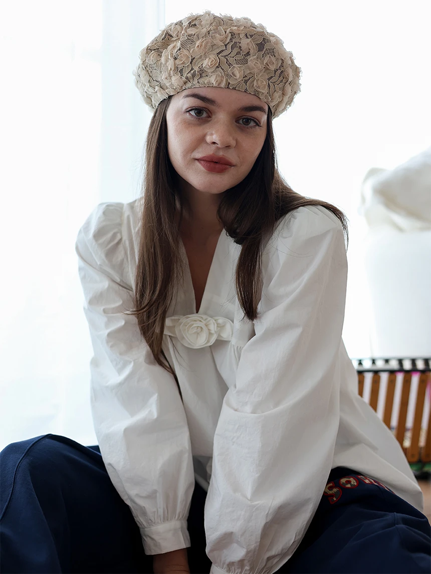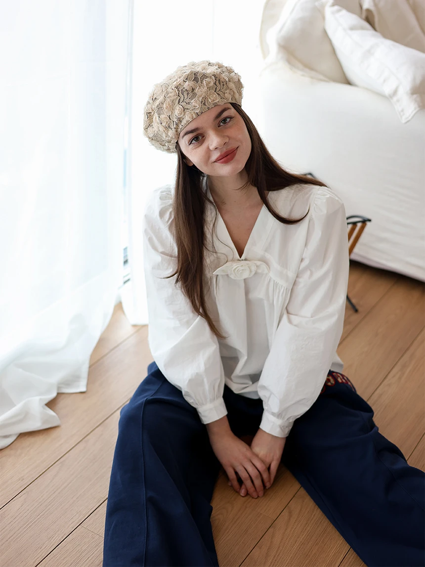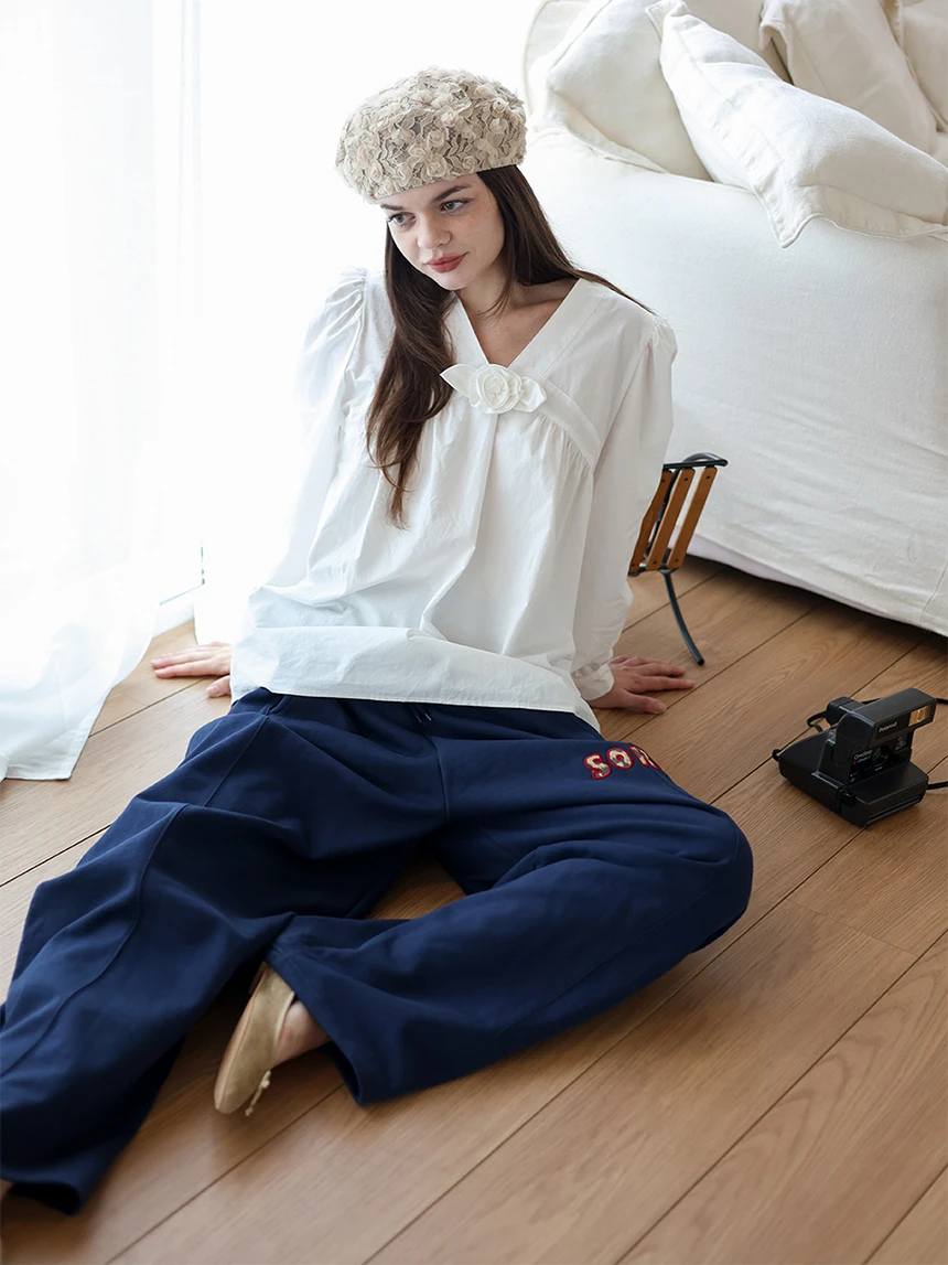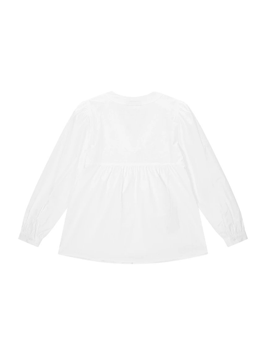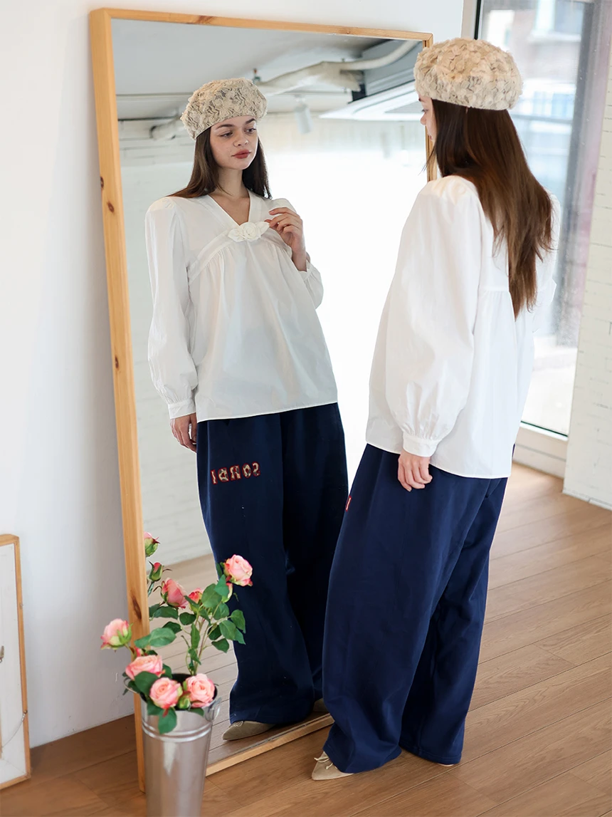 すっきりとしながらもロマンティックなムードを持つブラウス。フロントラインには取り外し可能なローズブローチがあしらわれ、クラシックな雰囲気をプラス。ルーズに落ちるパフスリーブがフェミニンなシルエットを演出します。快適でありながら上品なスタイルにも活用できるアイテムです。 COLOR : white FABRIC: Cotton 100% CARE:ドライクリーニング/単独手洗い/蛍光増白剤・漂白剤の使用不可/日陰で平干し乾燥/乾燥機使用禁止 Made in Korea