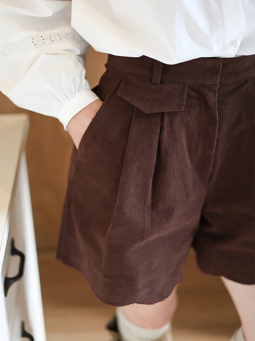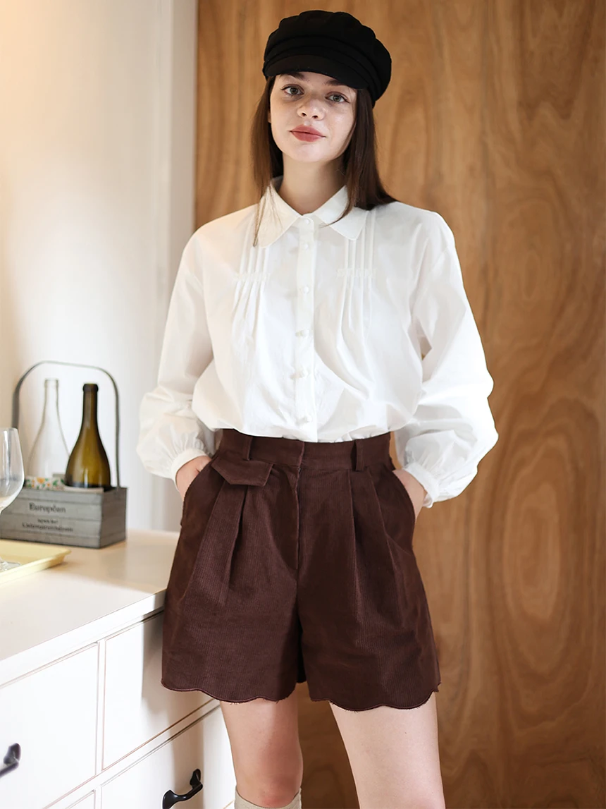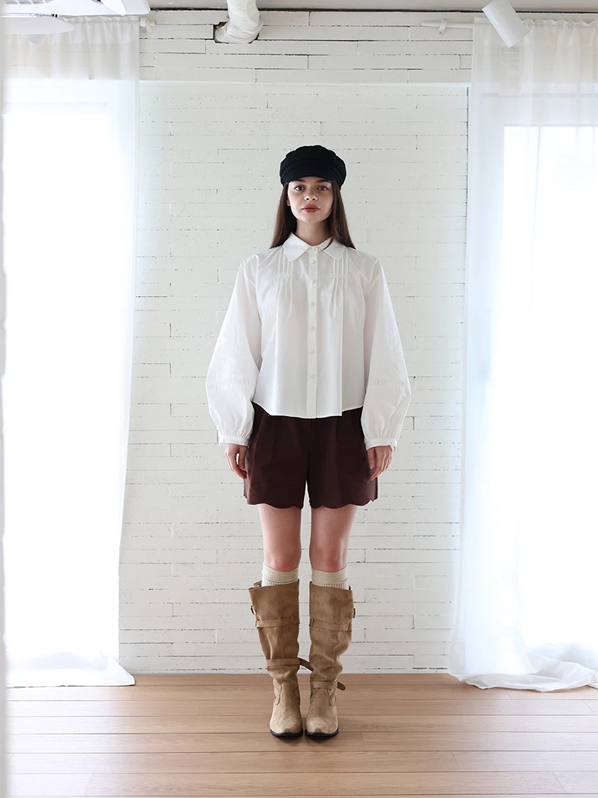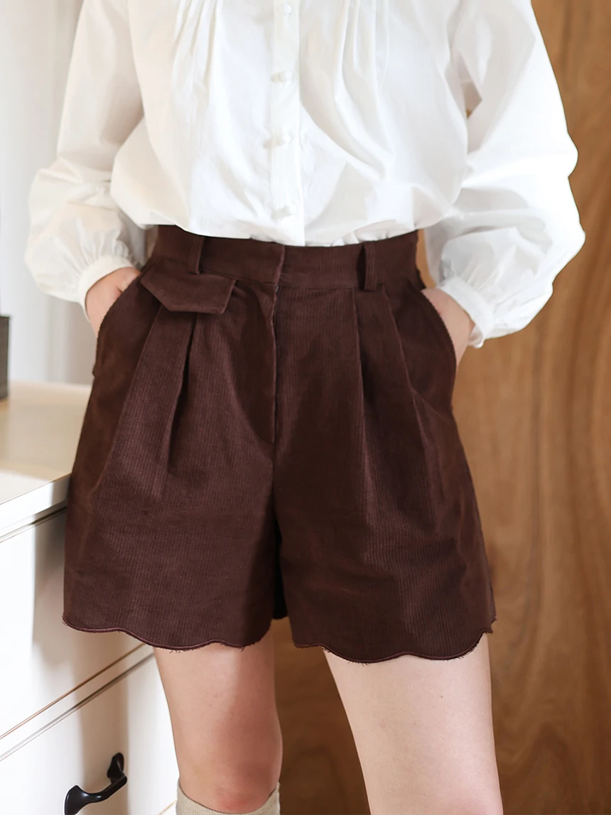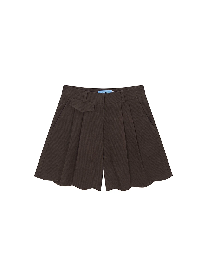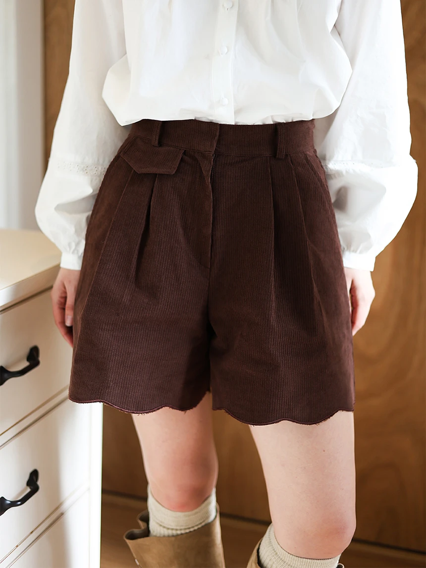 すっきりとしながらもラブリーなムードのコーデュロイパンツ。ウエストラインに施されたピンタックディテールが洗練されたシルエットを演出。ゆったりとしたAラインフィットで脚長効果を生み、裾の控えめなウェーブカットがアクセントとなり、ラブリーさをプラスしたアイテムです。 COLOR : brown FABRIC: Cotton 98% / Polyurethan 2% CARE:ドライクリーニング/単独手洗い/蛍光増白剤・漂白剤の使用不可/日陰で平干し乾燥/乾燥機使用禁止 Made in Korea