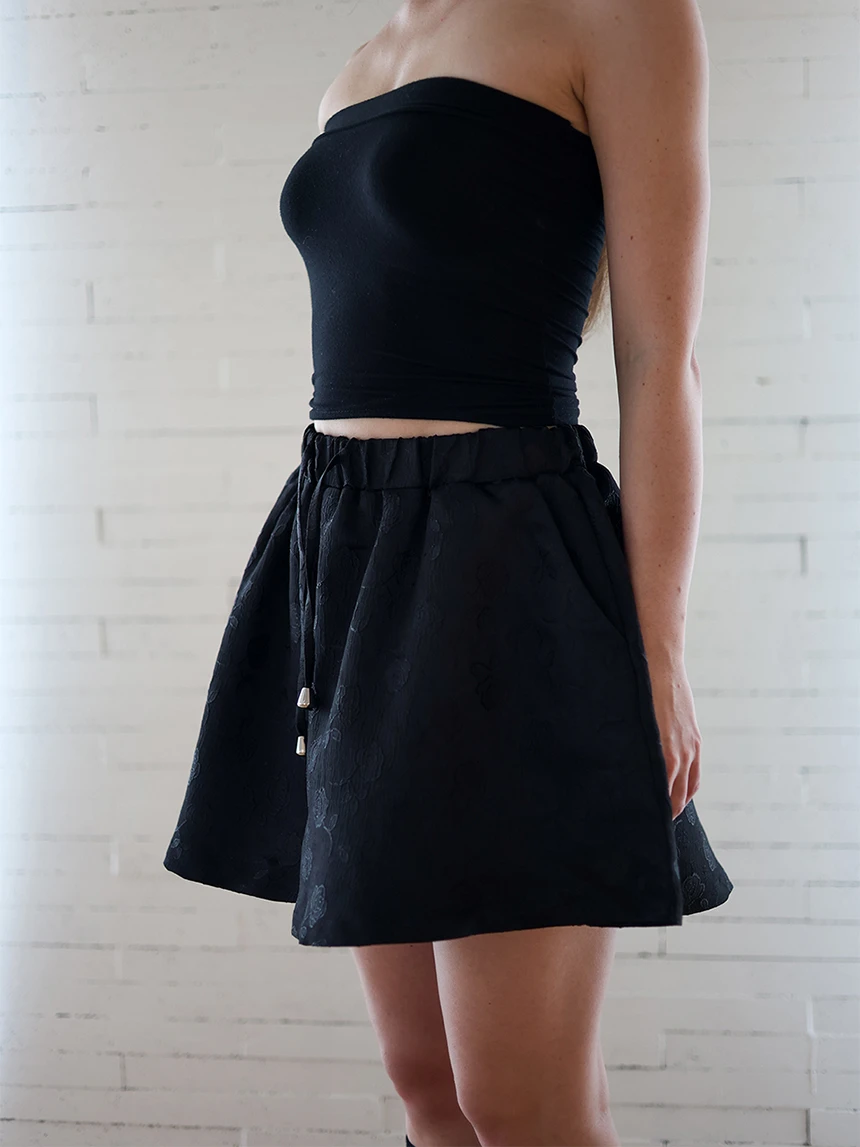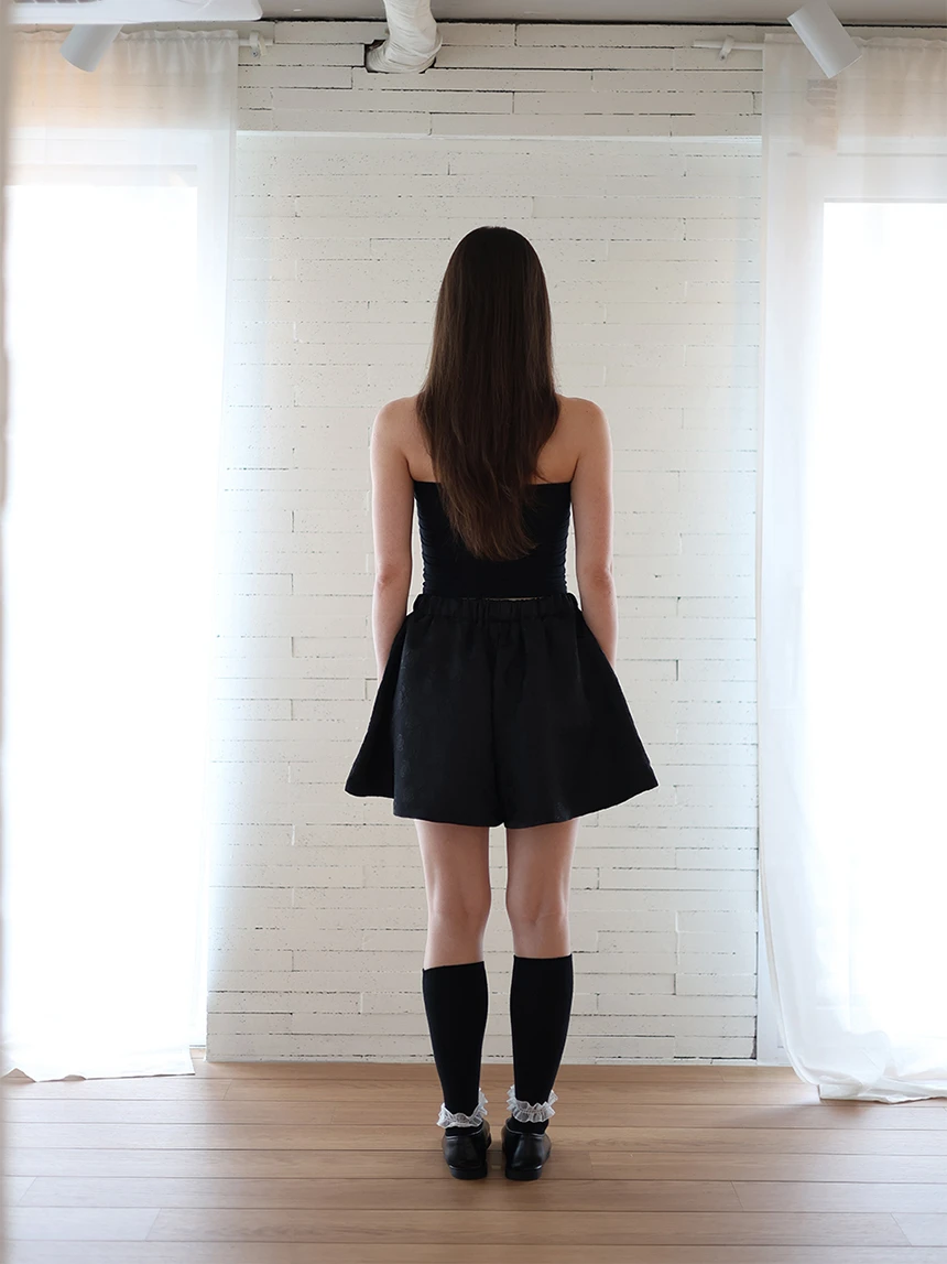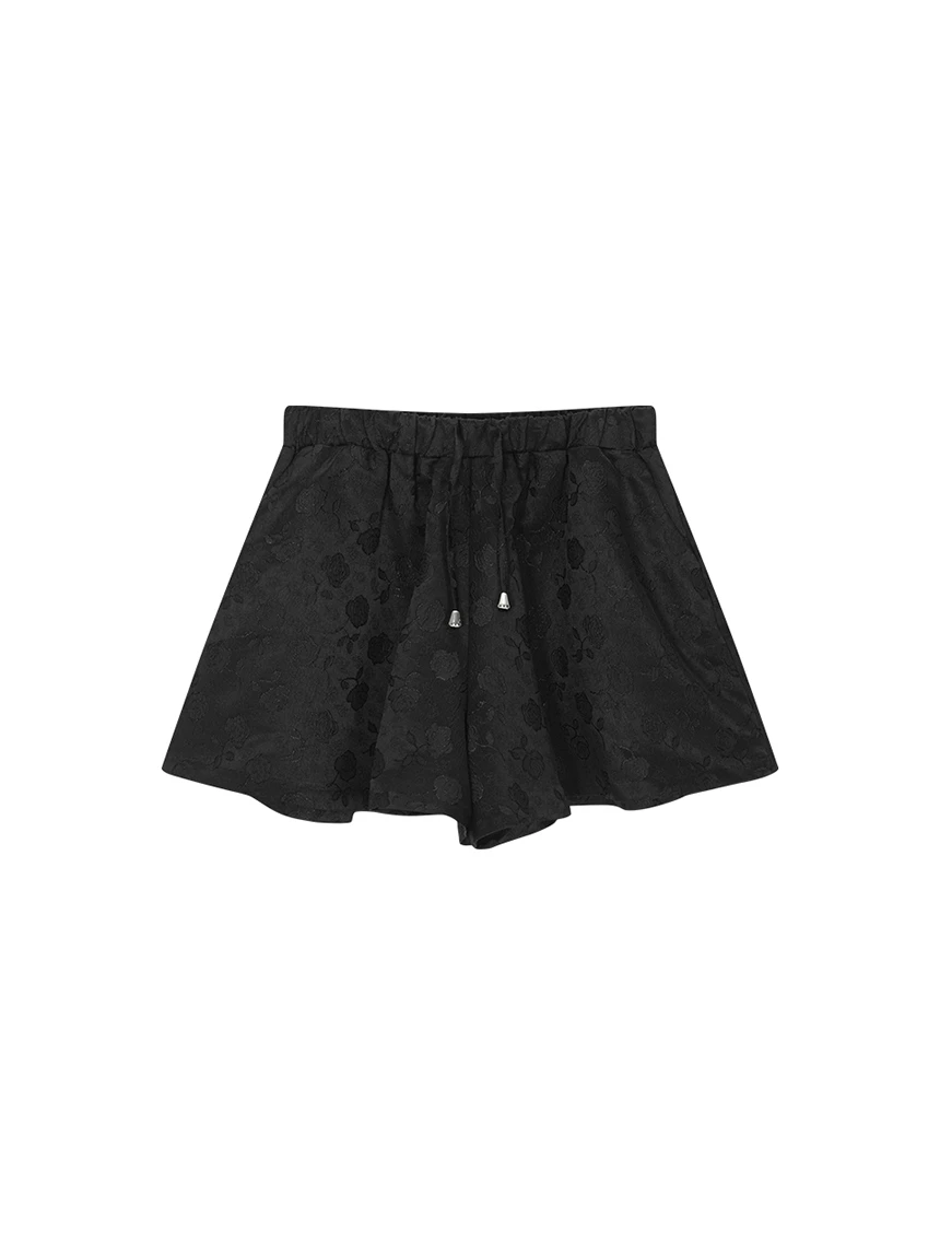 ガーリーでありながら洗練されたムードのフレアパンツ。控えめなフラワージャカードパターンが上品さをプラスし、ウエストはゴム仕様で快適に着用可能です。パンツながらスカートのように広がるAラインシルエットで脚をスリムに見せ、ミニ丈のデザインで元気でトレンド感のあるスタイリングが楽しめます。シフォン裏地付きでさらに上品さを演出。