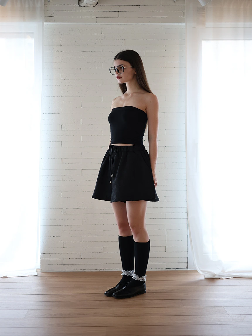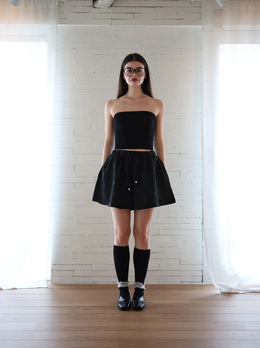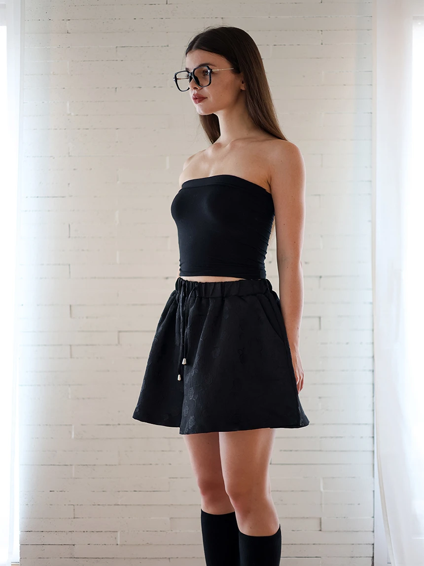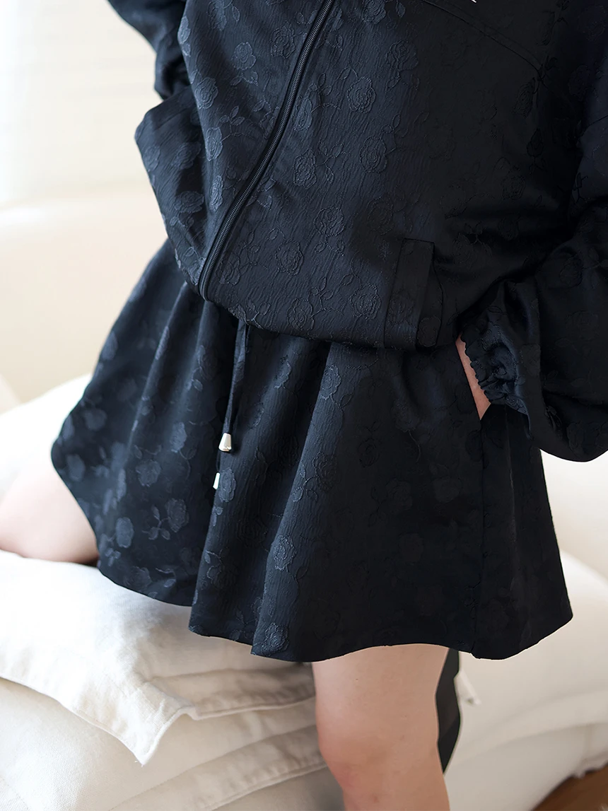 ガーリーでありながら洗練されたムードのフレアパンツ。控えめなフラワージャカードパターンが上品さをプラスし、ウエストはゴム仕様で快適に着用可能です。パンツながらスカートのように広がるAラインシルエットで脚をスリムに見せ、ミニ丈のデザインで元気でトレンド感のあるスタイリングが楽しめます。シフォン裏地付きでさらに上品さを演出。