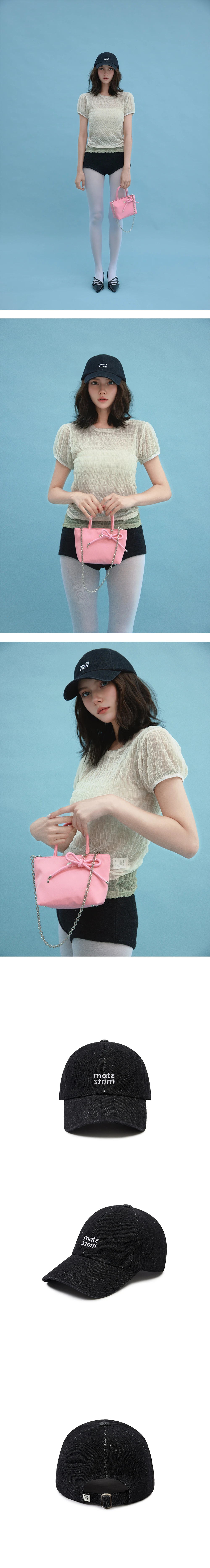 COTTON 100% * 洗濯の際、色落ちや色移りの恐れがありますので、必ず単独で洗ってください。 * 漂白剤や漂白成分を含む洗剤の使用はお避けください。 * 着用中の摩擦により他の製品へ色移りする可能性がありますのでご注意ください。 * 商品画像の色味は、ご使用のモニター環境により暗く見えたり明るく見える場合があります。 * 測定の過程で1〜1.5cmほどの誤差が生じる場合がございます。 * ジッパー付きポリ袋の特性上、少量の滑剤の粉が商品に付着する場合があります。 Front width: 23cm Side length: 16cm Brim length: 6.5cm MADE IN KOREA