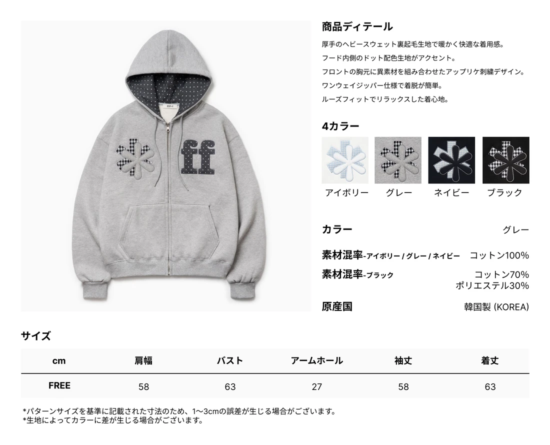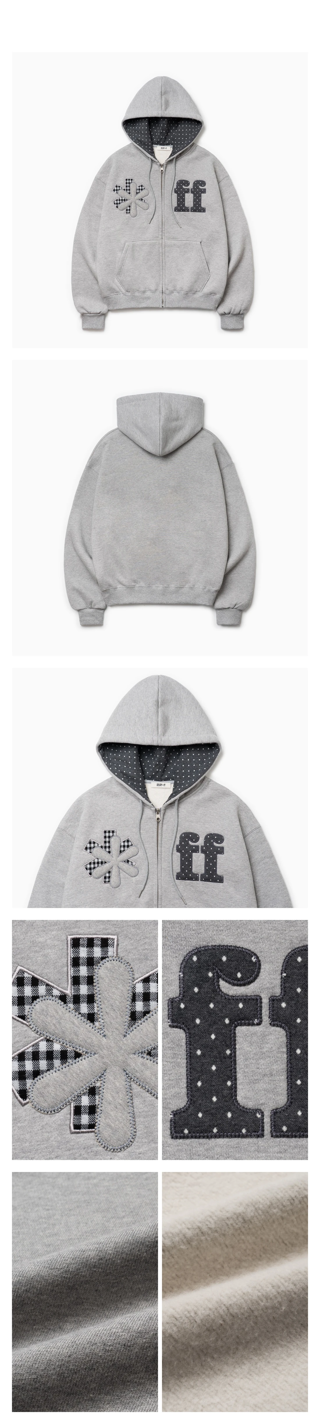 PATCHWORK APPLIQUE HOOD ZIP-UP GRAY