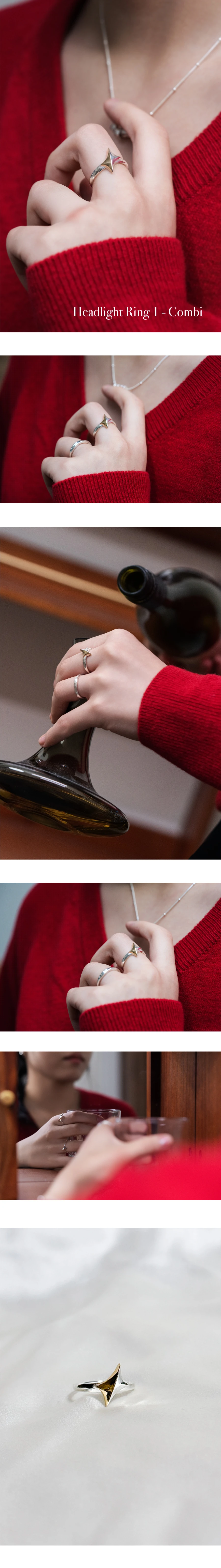 夕方7時頃、1日の終わりに帰路を歩く中でふと目に映る、車のヘッドライトがきらめく瞬間。その情景をそのまま閉じ込めたジュエリーです。 リングのヘッド部分にはコンビメッキを施し、光の残像を思わせるニュアンスを表現。シルバーの上に重ねたゴールドカラーが、控えめな華やかさとユニークなムードを引き立てます。 程よい厚みのあるバンドは指に心地よくフィットし、安定感のある快適な着用感を叶えてくれるアイテムです。