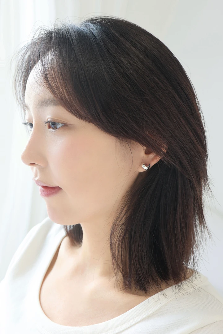未完成で不器用な愛であっても、誰かの眼差しの中では美しく映るという想いを込めたピアスです。抑制の効いた曲線と余白のあるデザインが、日常の装いに静かな奥行きを添えます。 SIZE : W 9.5x L 9.2 METERIALS : Silver 925