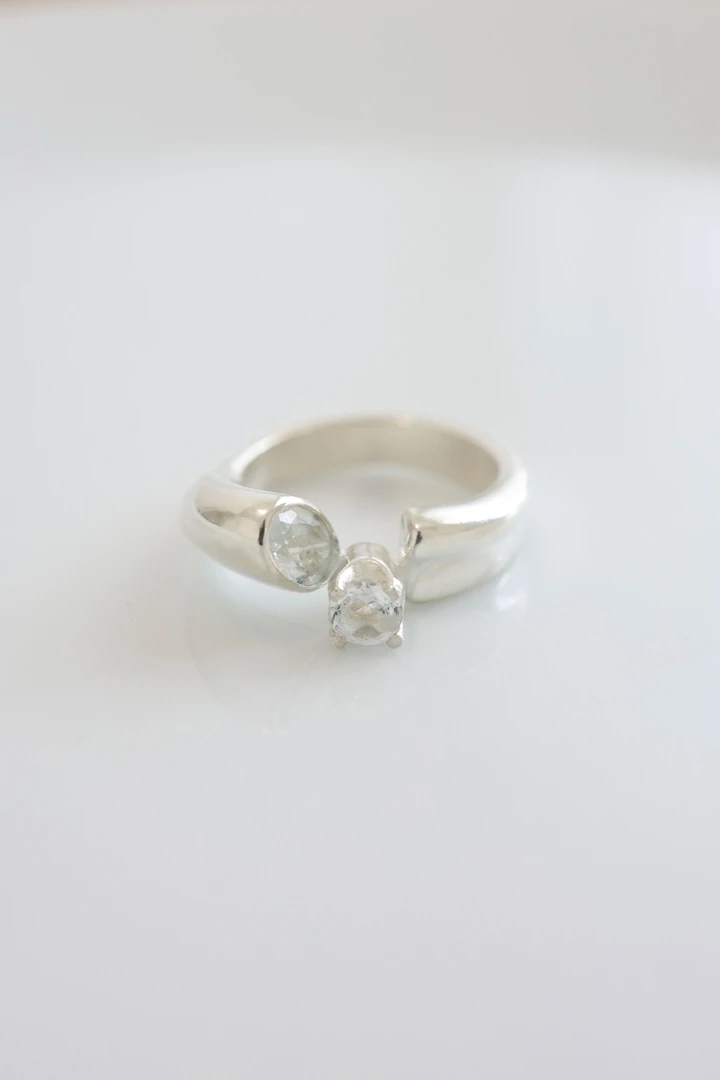 千年の愛を意味するカラー(Calla)の花からインスピレーションを受けて誕生したリングです。純粋で気高い愛のように、時を重ねても変わることのない深い想いを、このリングに込めました。 SIZE : 7号 , 9号 ,11号, 13号, 15号 METERIALS : Silver 925 / Aquamarine 6x4 , Topaz 4mm