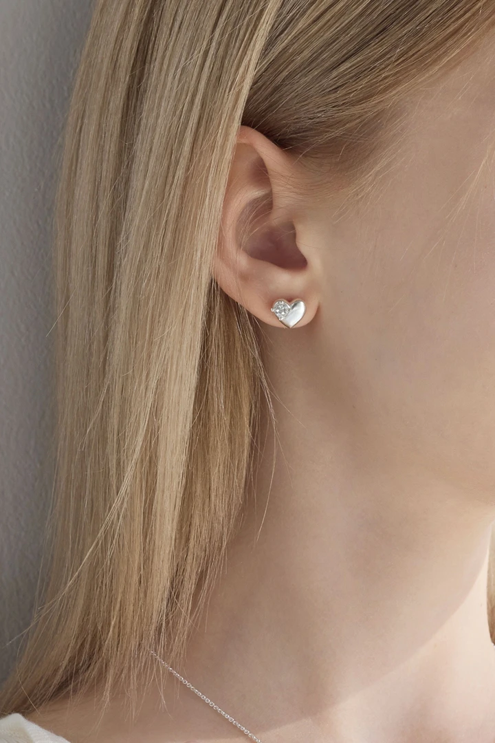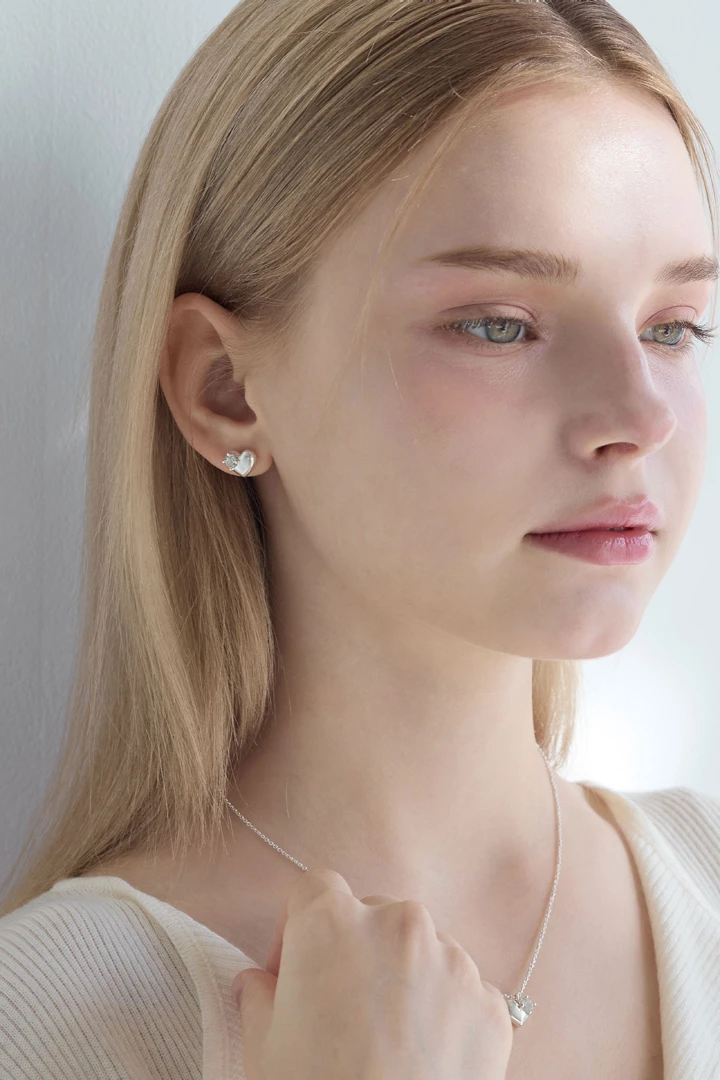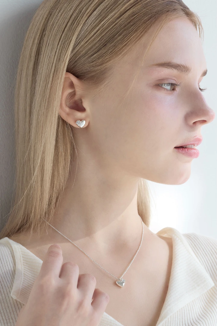 完璧ではないハートラインに沿ってホワイトトパーズをあしらい、特別感のある表情に仕上げたハートネックレス。柔らかな曲線が描く愛らしいハートモチーフは、どんなスタイリングにも自然に溶け込み、日常使いにもぴったりです。 さりげなく輝くホワイトトパーズが胸元に上品なきらめきを添え、シンプルながらも印象に残るデザインとなっています。 SIZE : W:10 / L:9.2 METERIALS : Silver 925 / White Topaz 4mm x 1
