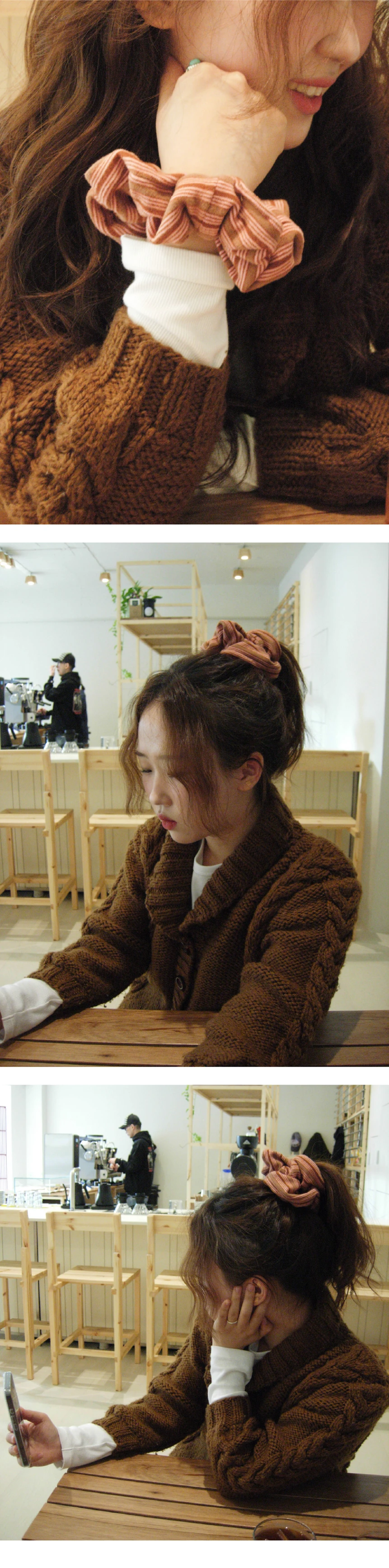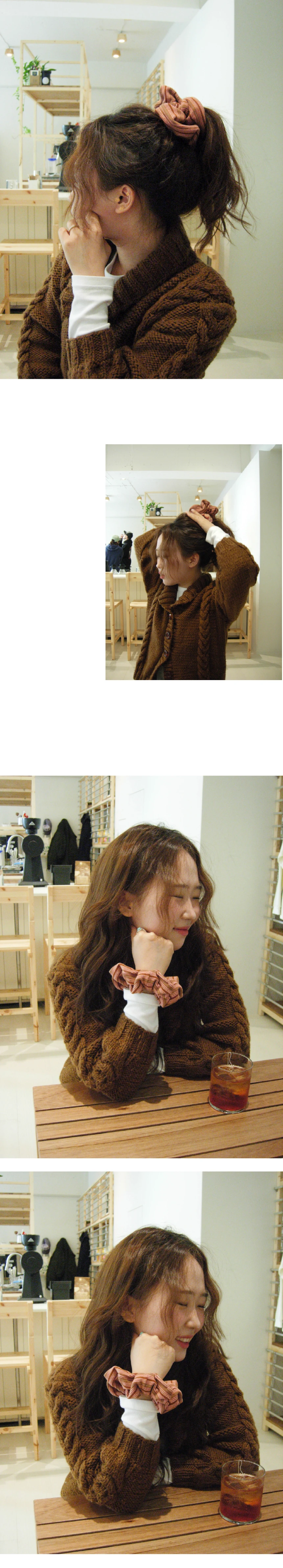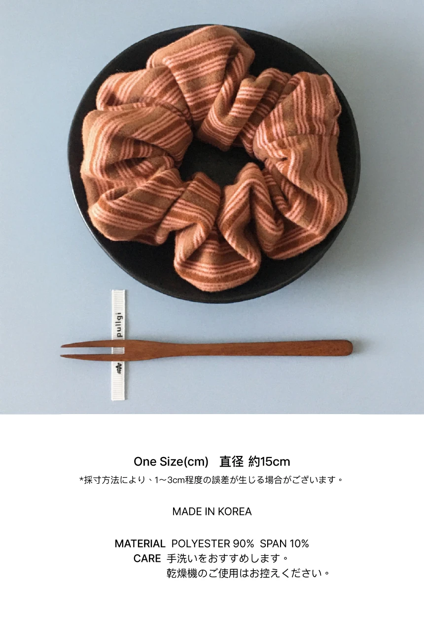 ❋ LIMITED EDITION ❋ Pulgi初の東京ポップアップを記念した、リミテッドエディションのシュシュです。 FLAT DONUT、FLAT BAGELよりもひとまわり小さいミディアムサイズで、よりウェアラブルに仕上げました。 ブロックストライプ柄が際立つデザインで、スタイリングのさりげないポイントになります。 起毛感のあるやわらかな素材を使用し、軽やかなつけ心地。 手首や肌に触れるたび、思わず触れたくなるような心地よさが魅力です。 「SAKURA」は、サクラピンクとブラウンを組み合わせた、上品で温かみのあるブロックストライプ柄です。 PULLGI IN-HOUSE CRAFTED MACHINE WASH COLD WASH SEPARATELY DRY CLEAN MATERIAL : POLYESTER 90, SPAN 10 SIZE : 15CM MODEL HEIGHT 159cm